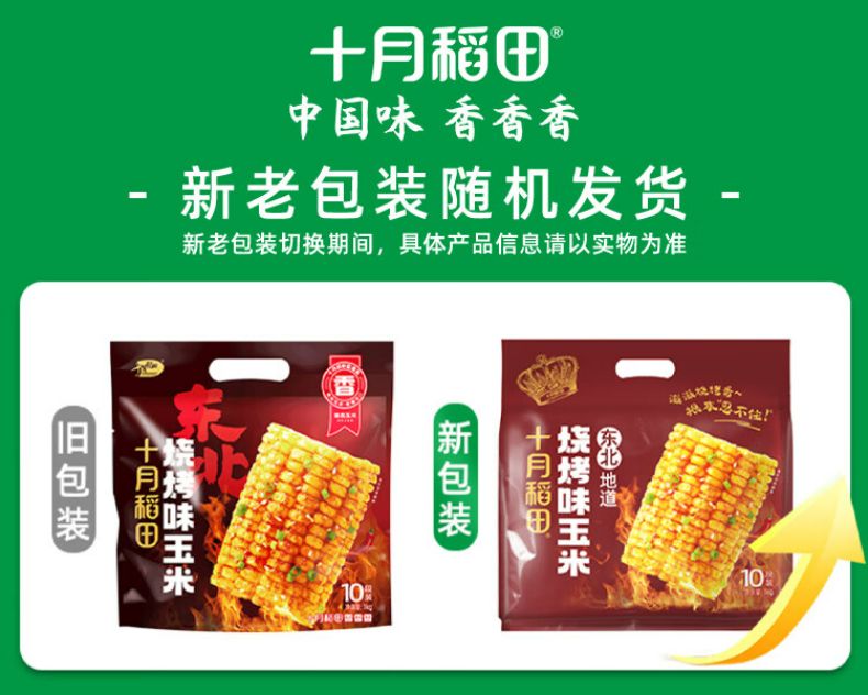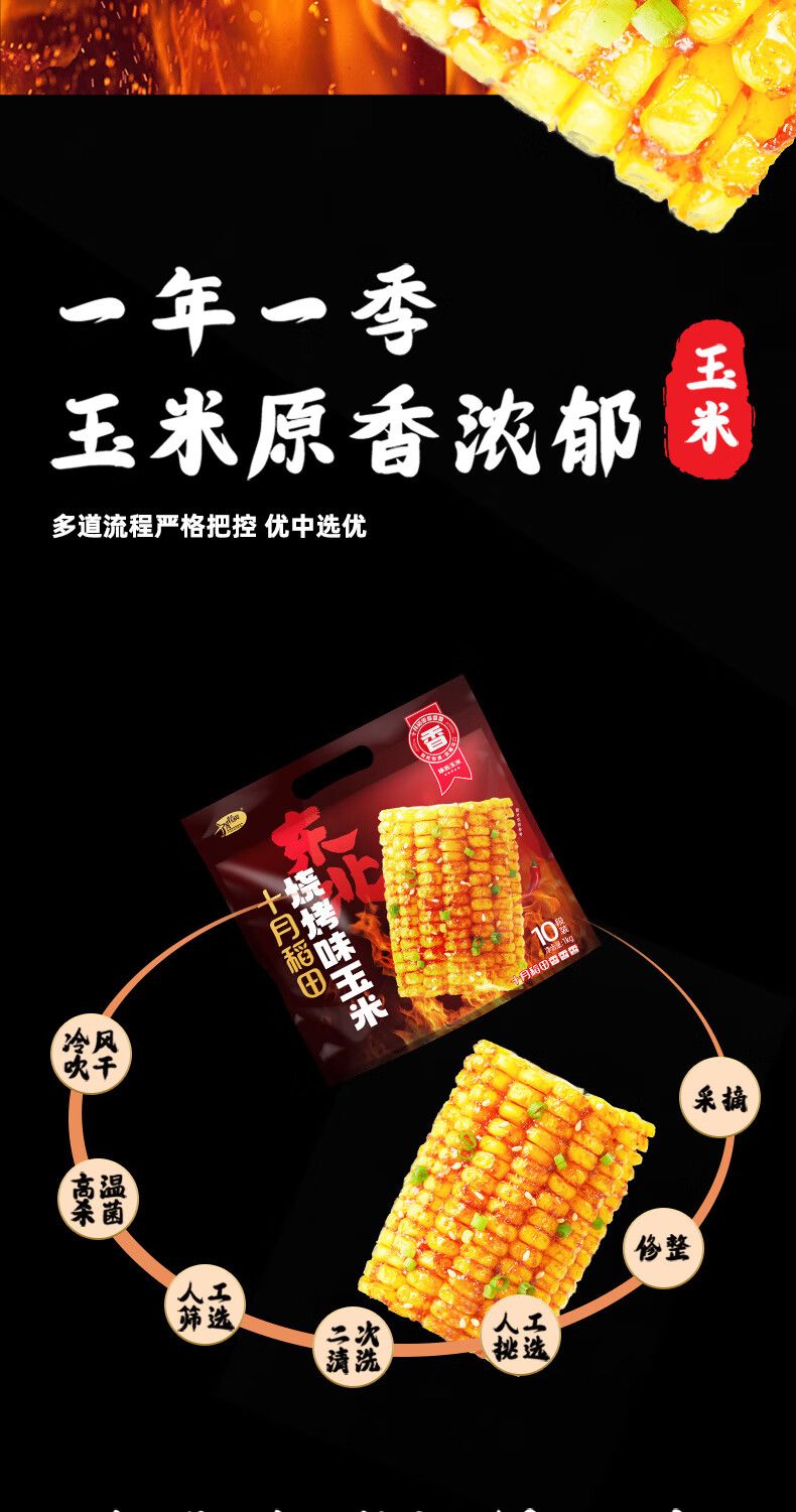 商品名称:十月稻田 烧烤味玉米段1kg 黄糯玉米 咸香东北苞谷酱汁粘糯零食