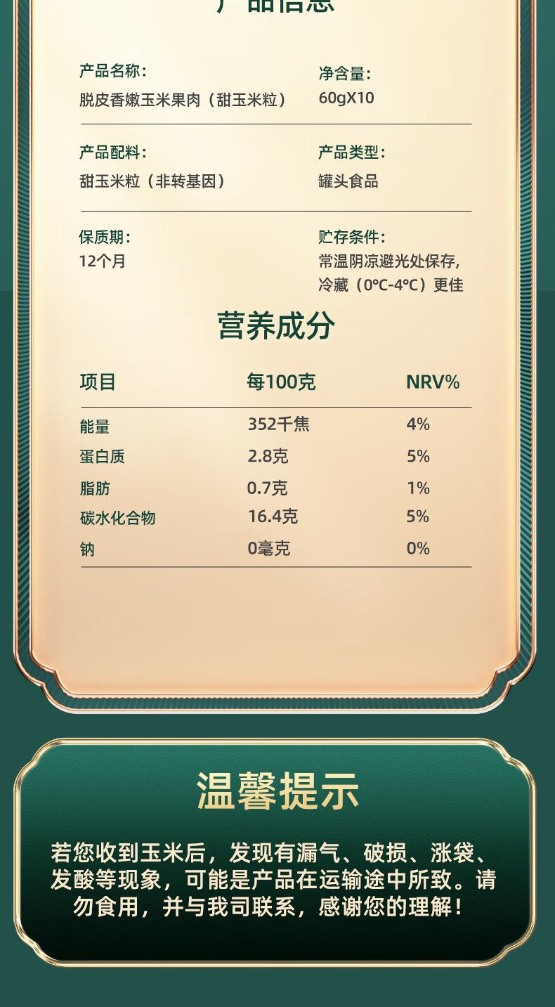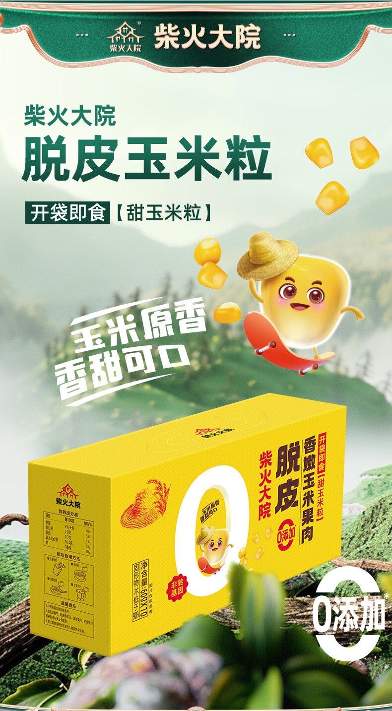 商品名称:柴火大院 脱皮玉米粒60g*10袋 脱皮香嫩玉米果肉 非转基因 开袋即食