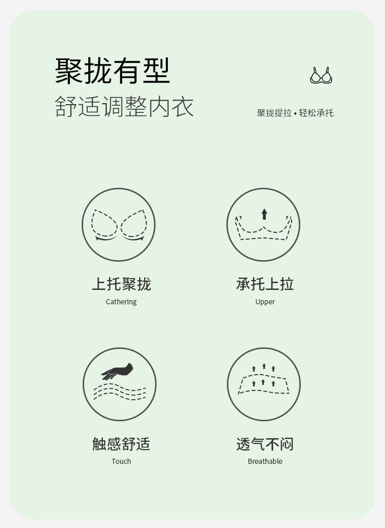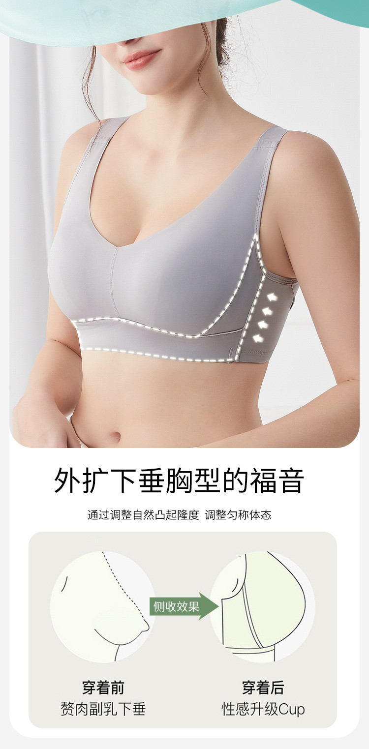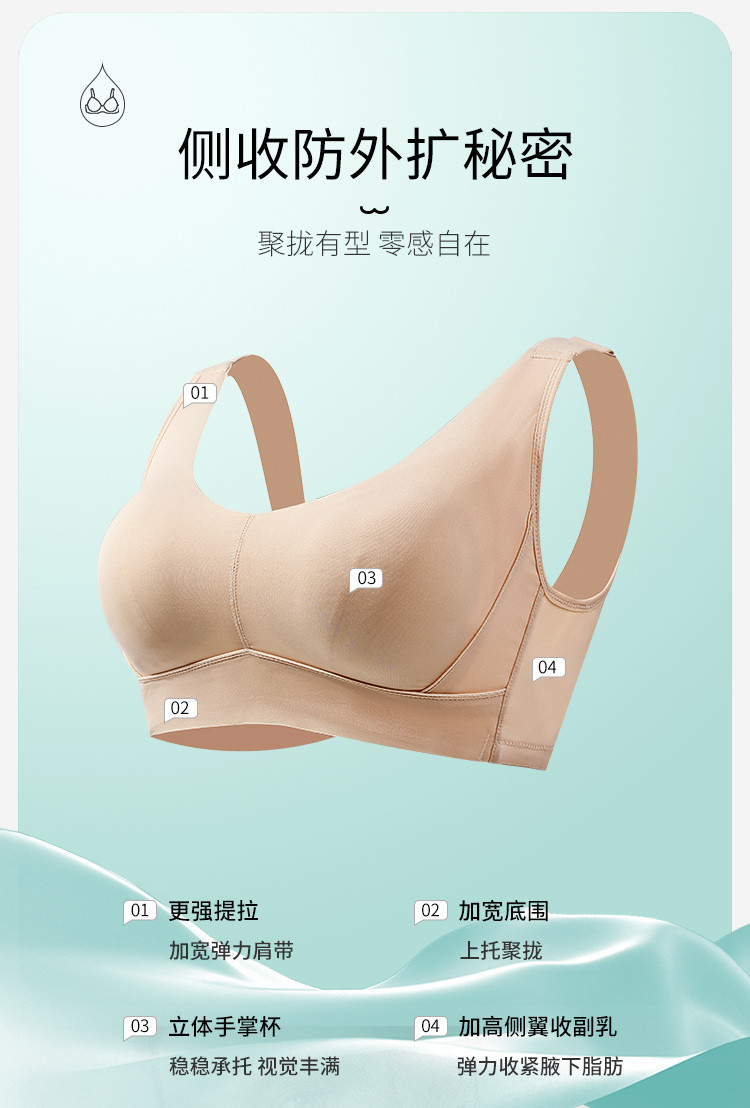 商品名称:【透气聚拢手掌杯】宽肩带提拉侧收仿外扩无钢圈内衣女士文胸罩 623774
