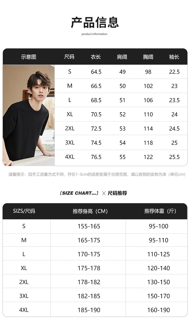 【220克重磅棉】短袖男宽松大码简约潮牌运动上衣重磅纯棉t恤 796755