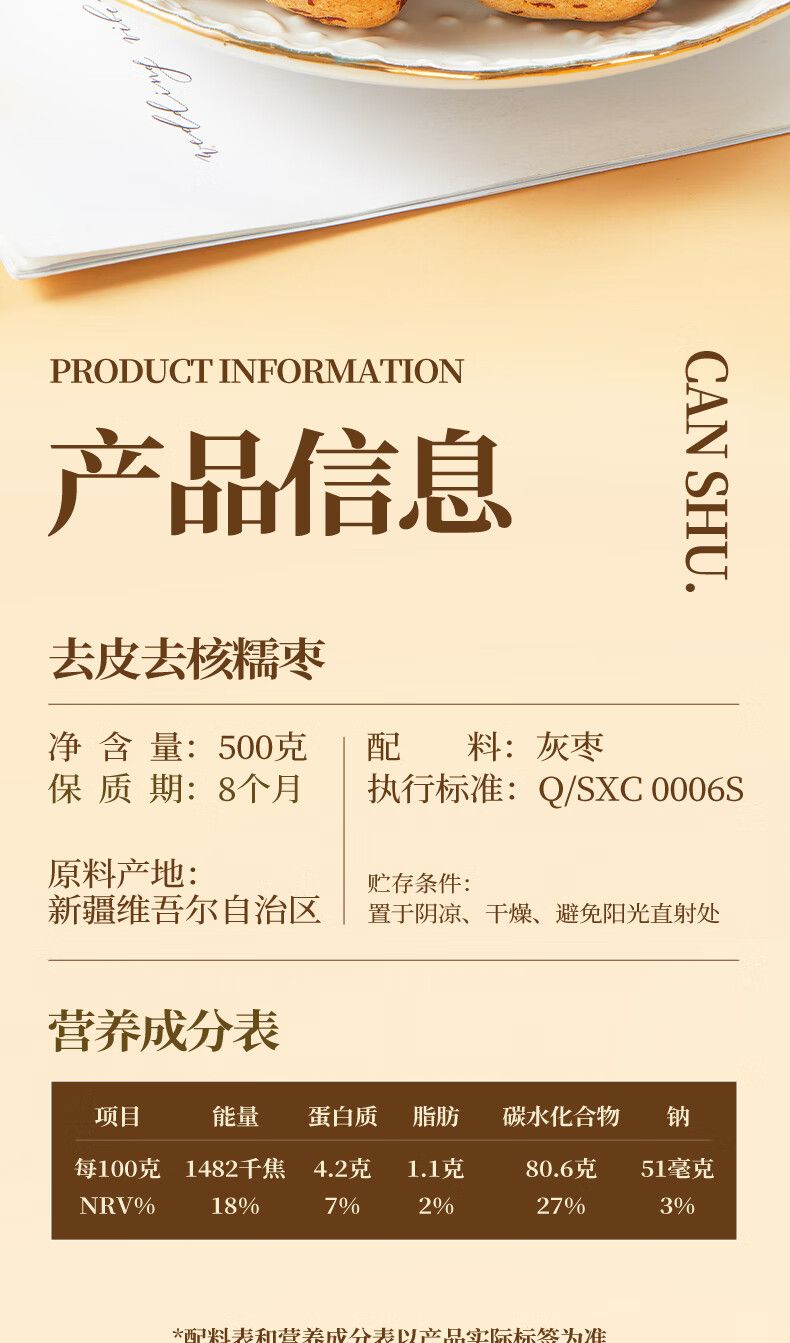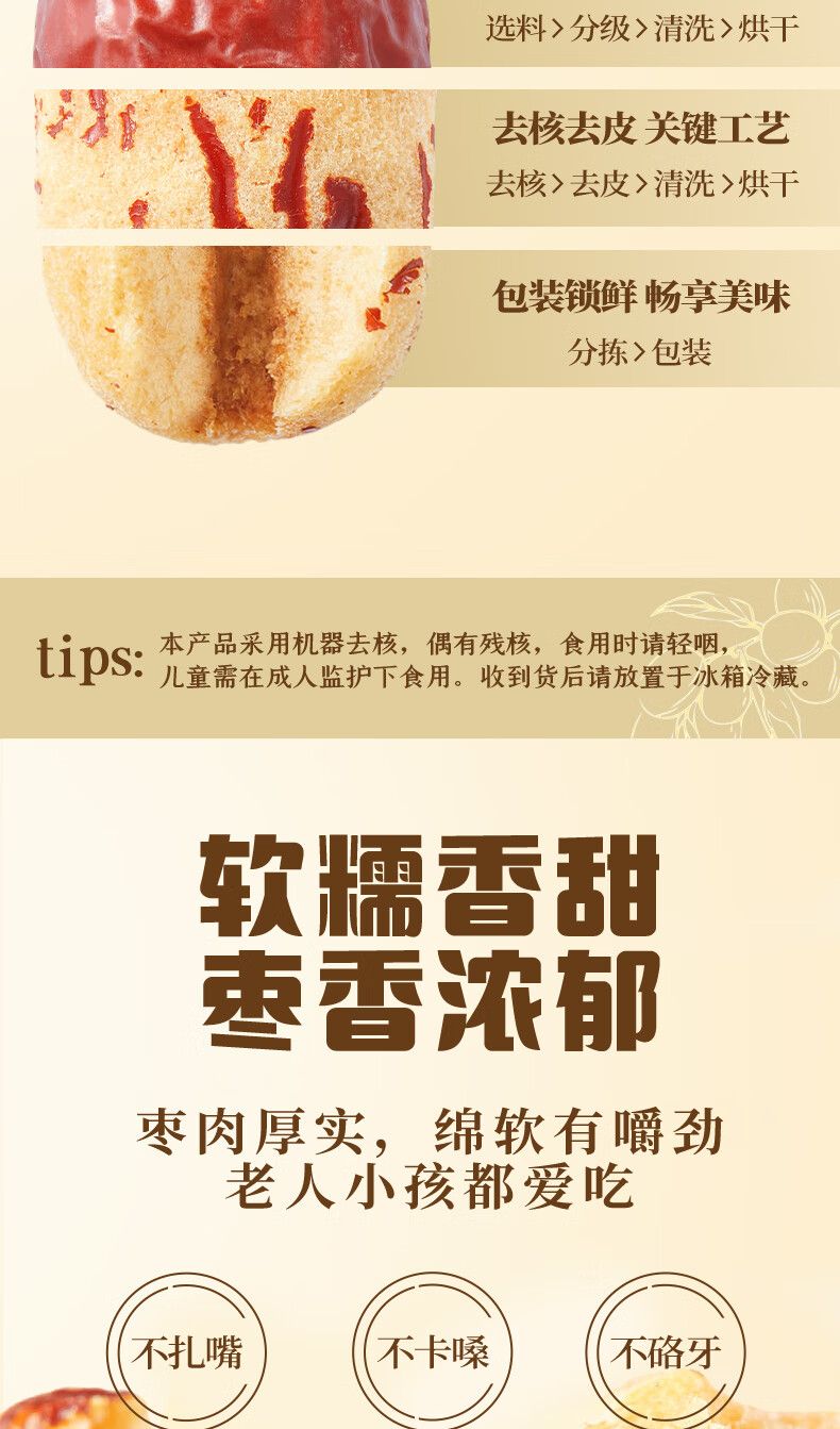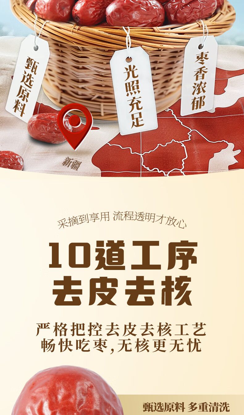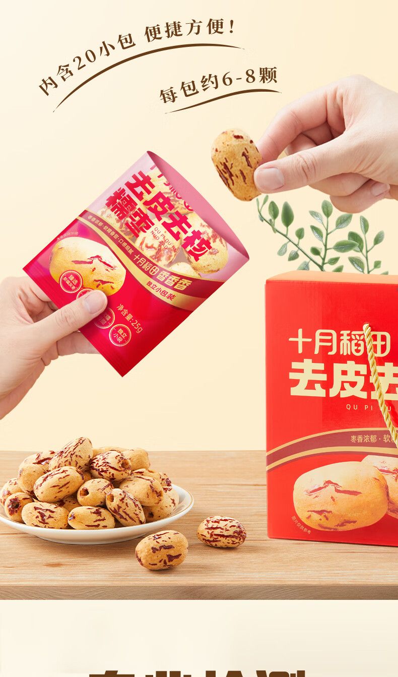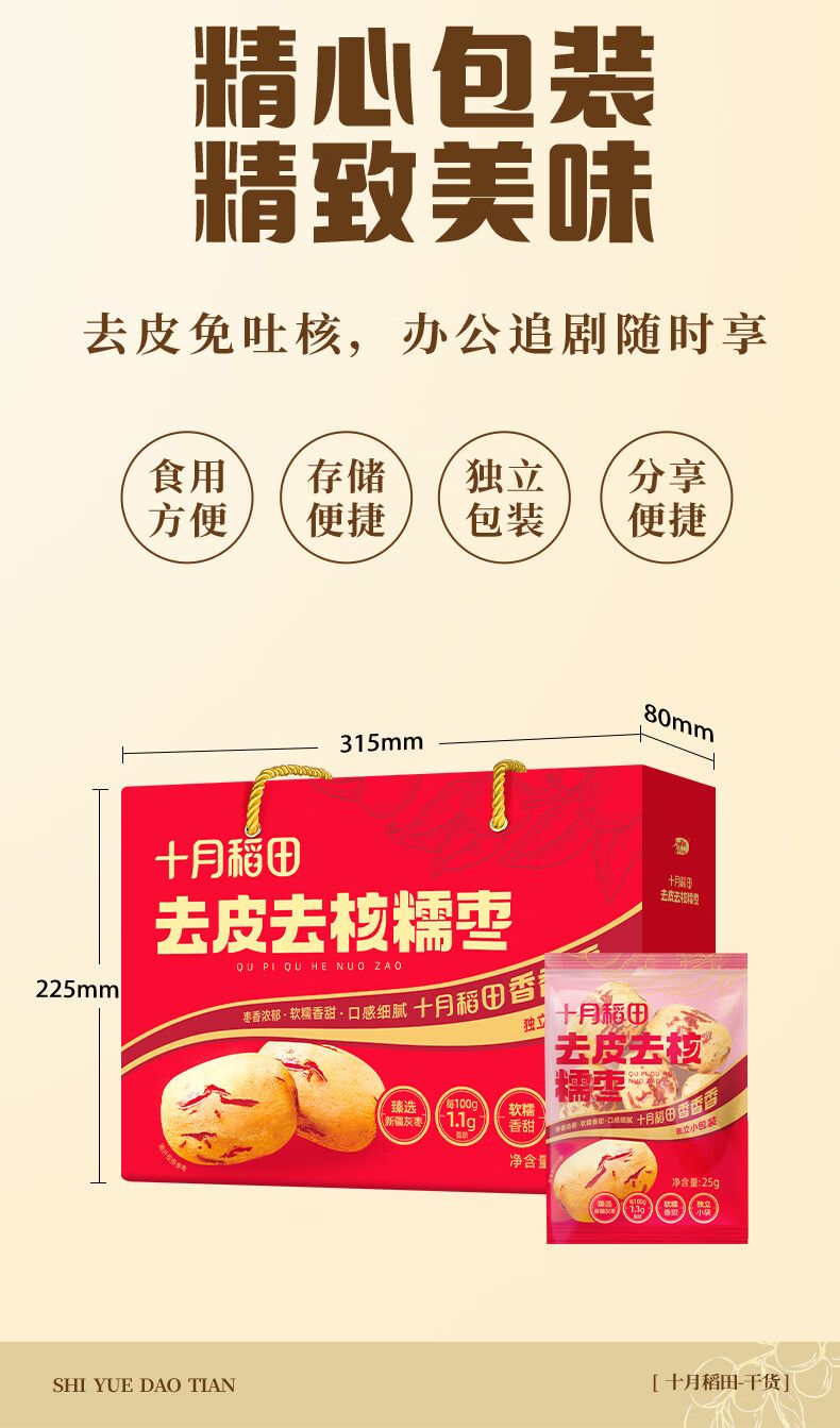 商品名称:十月稻田 去皮去核糯枣礼盒500g 新疆灰枣 无核 干果零食