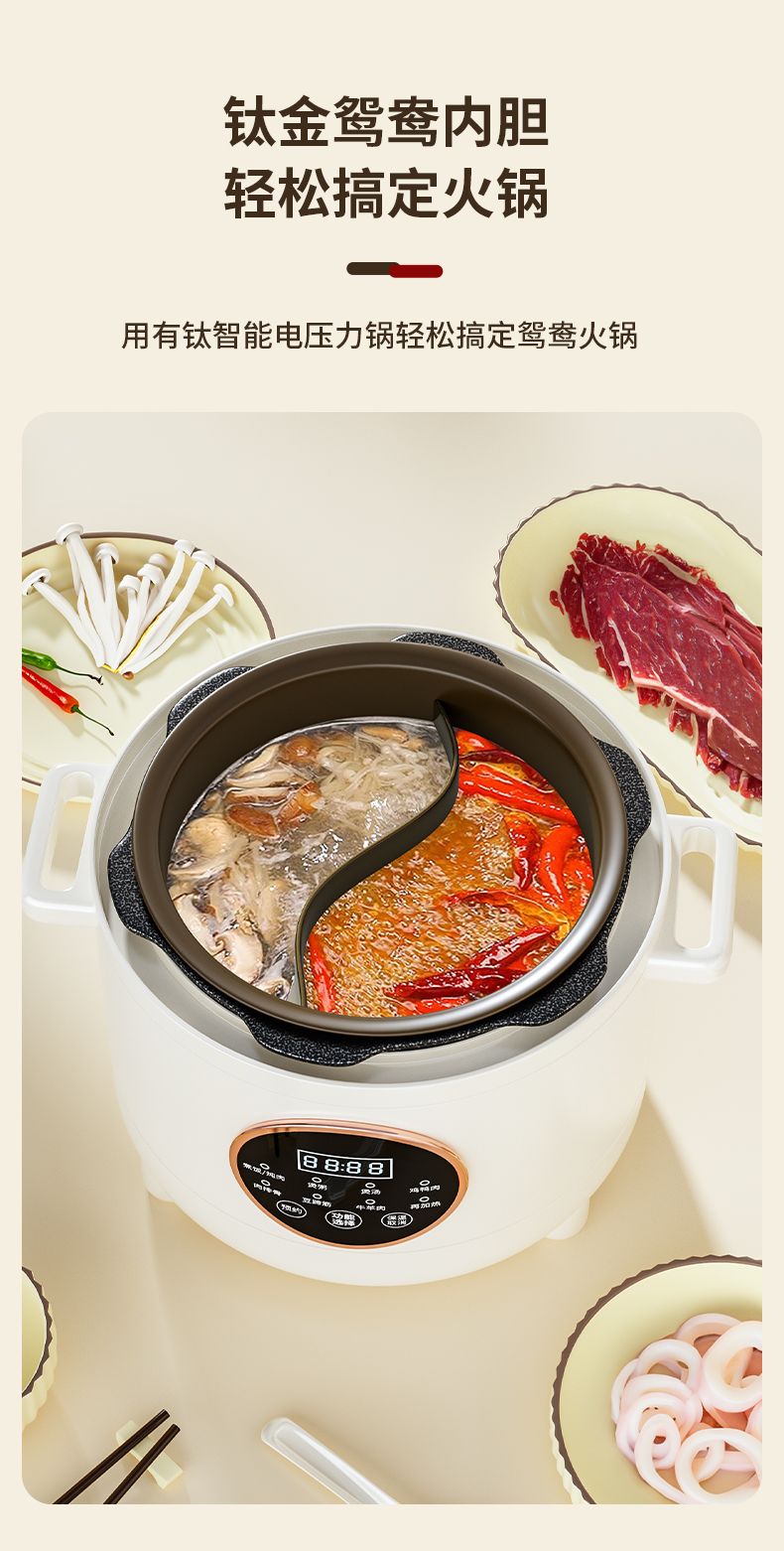 德博莱钛金鸳鸯电压力锅LSD-DYLG001