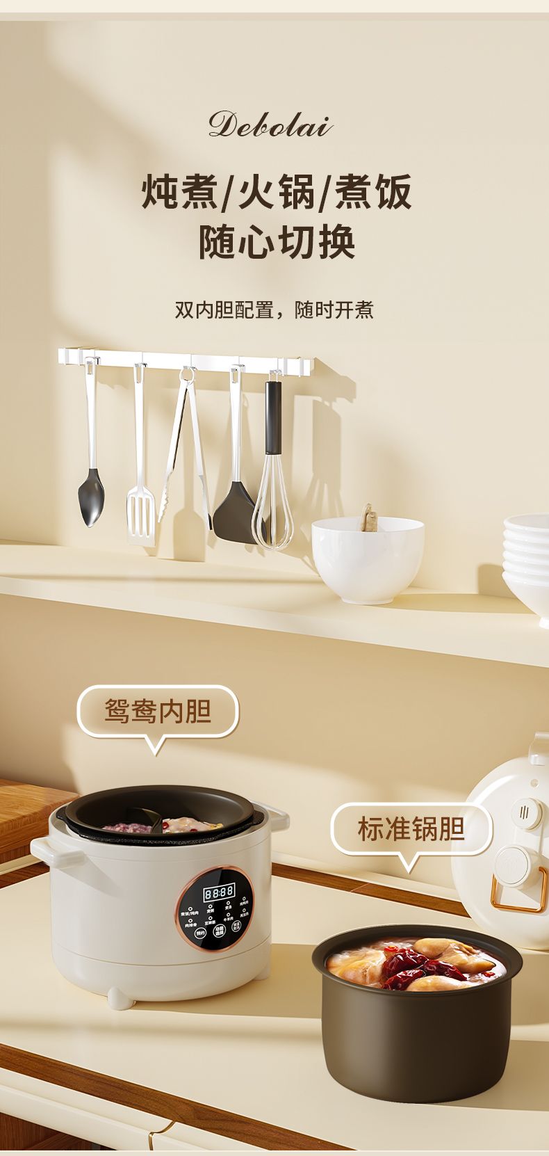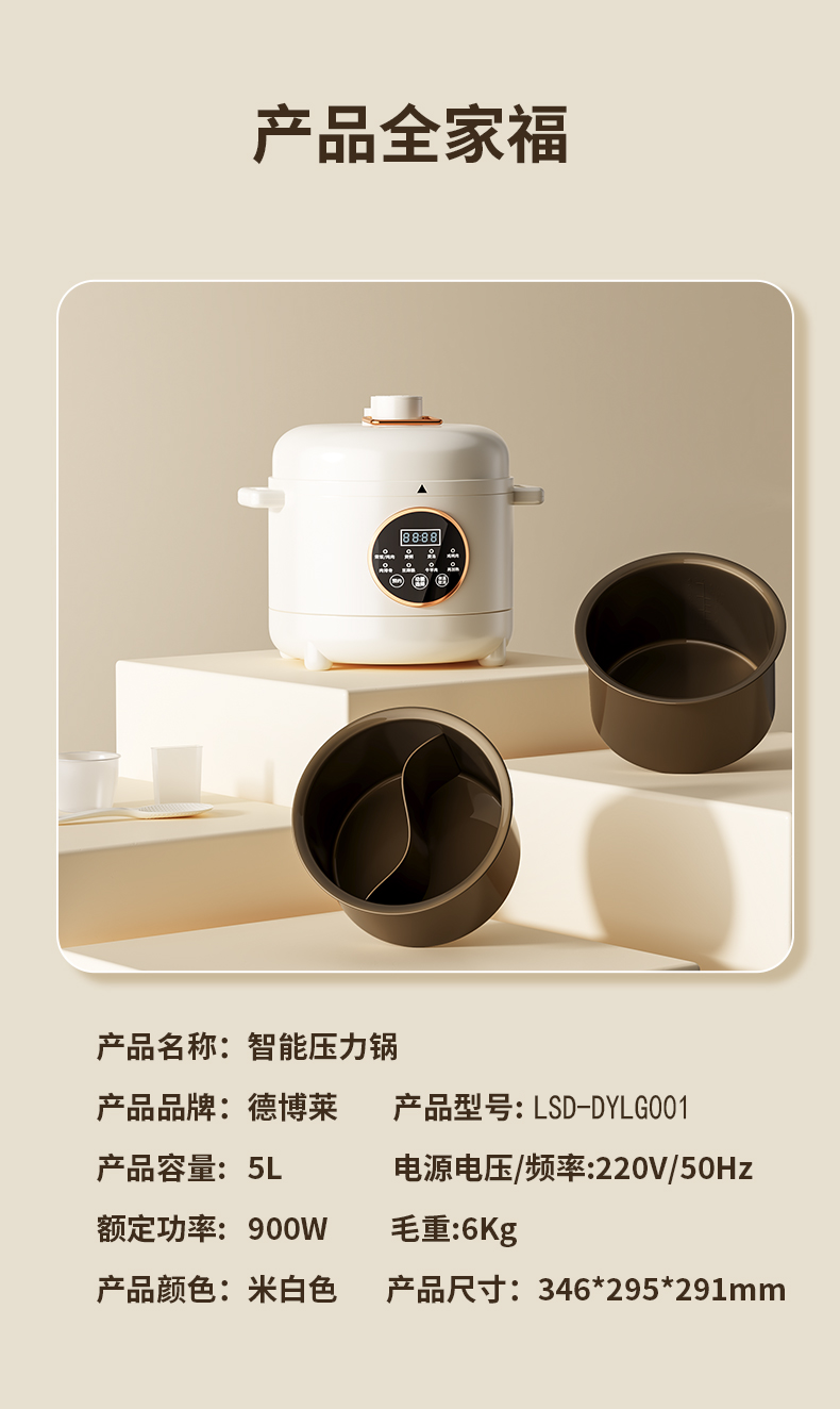 商品名称:德博莱钛金鸳鸯电压力锅LSD-DYLG001