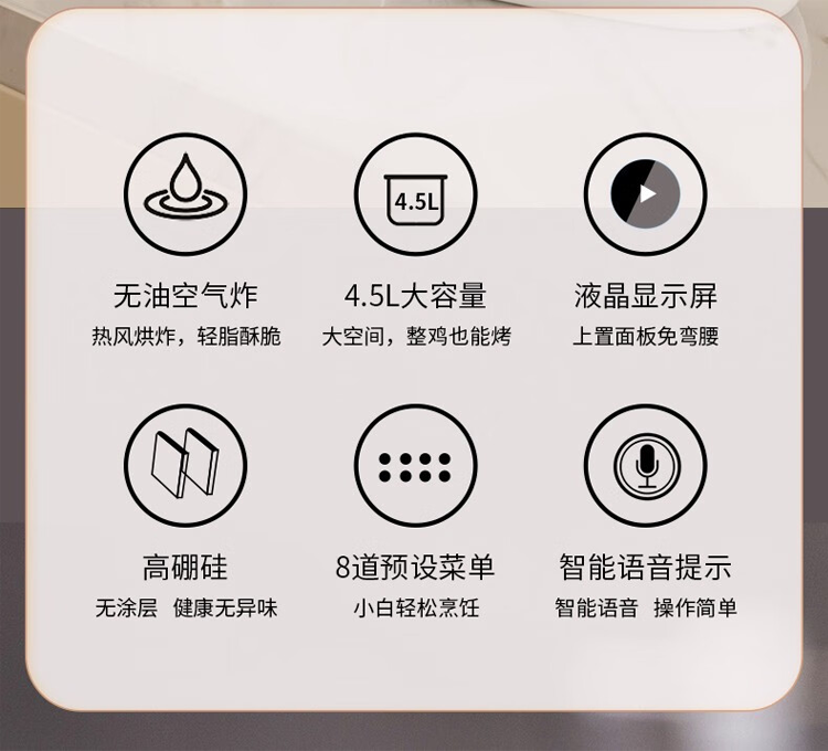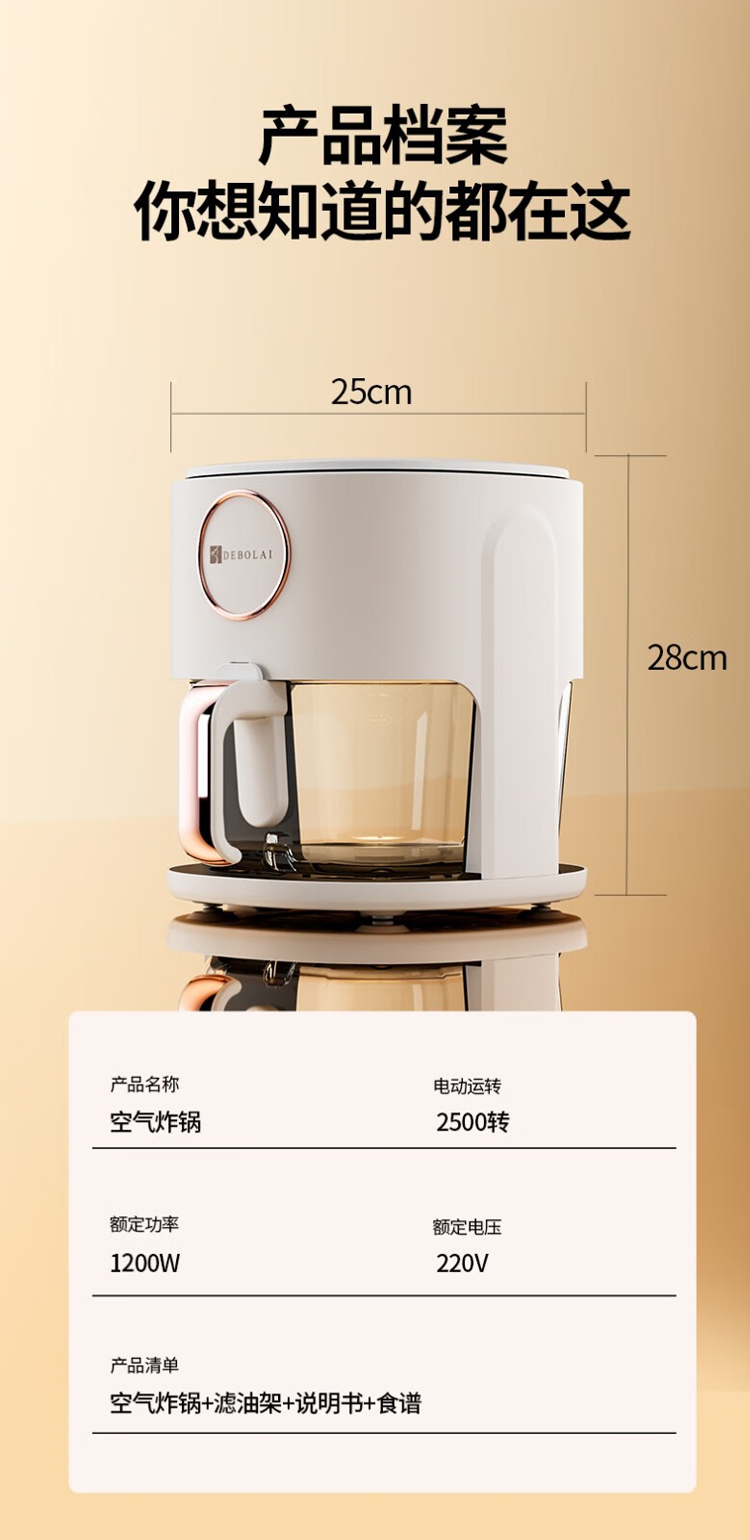 商品名称:德博莱空气炸锅DBL-YYKQZG01