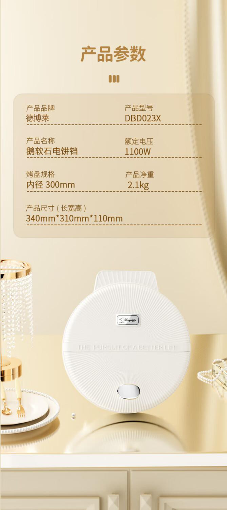 商品名称:德博莱鹅卵石电饼铛DBD023X