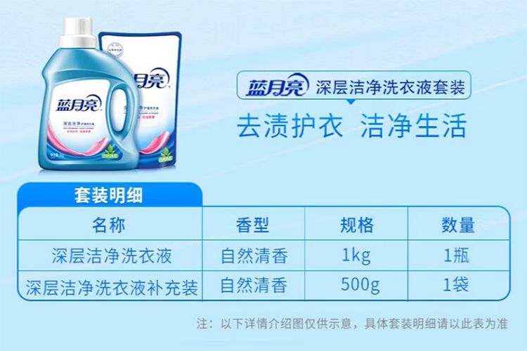 商品名称:蓝月亮洁净洗衣组合:洁净自然洗衣液1kg+袋500g