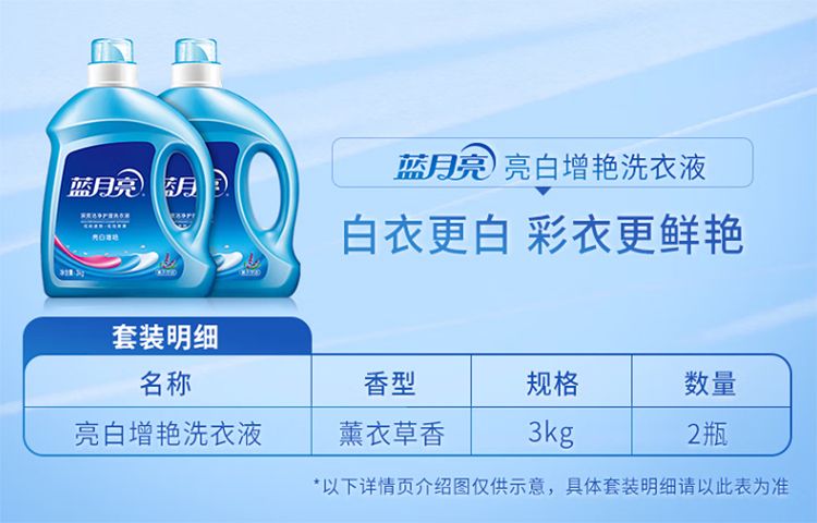 商品名称:蓝月亮薰衣草亮白增艳洗衣液3kg*2