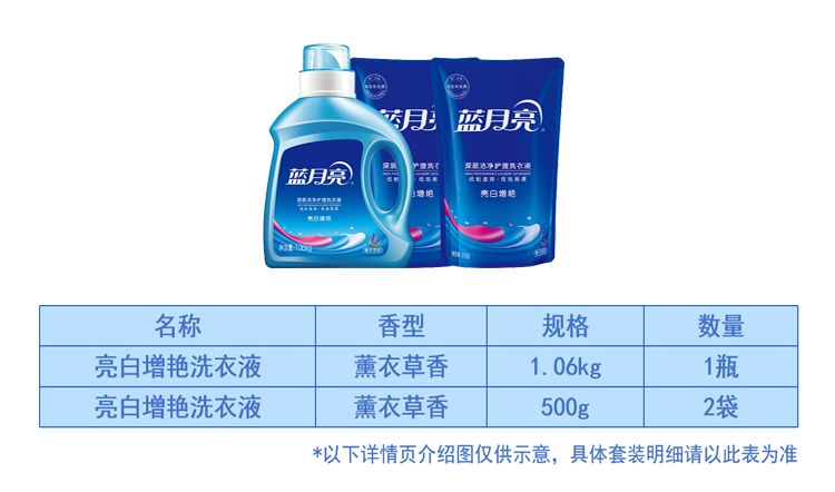 商品名称:蓝月亮亮白薰衣草洗衣液小礼包1.06kg+袋500g*2