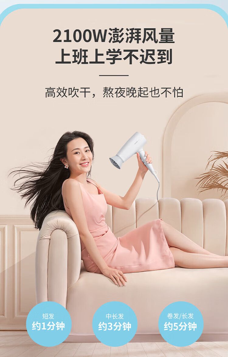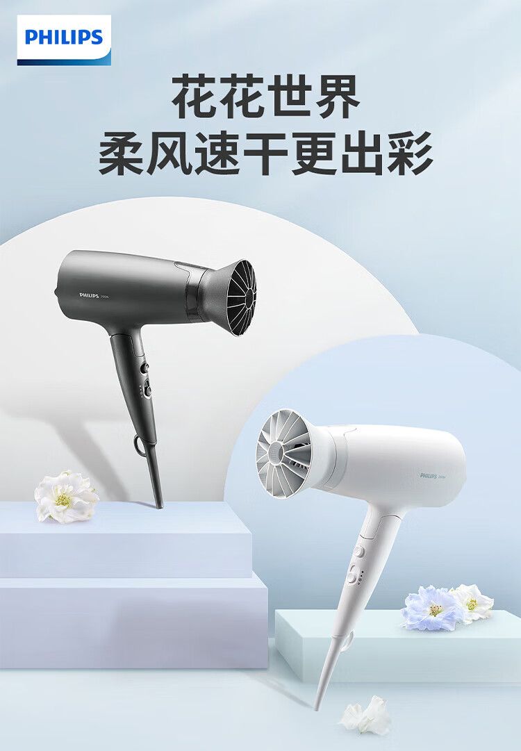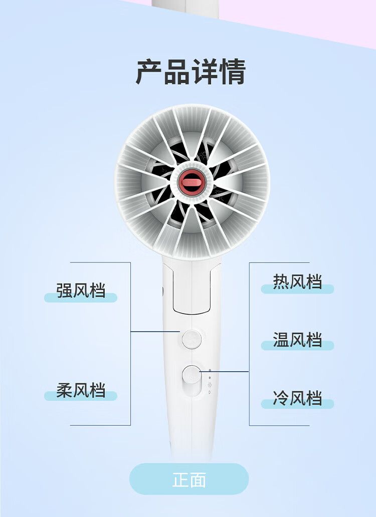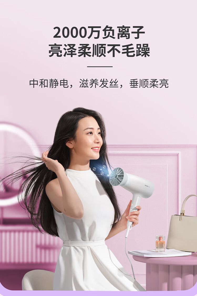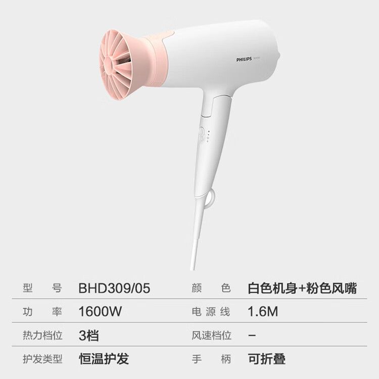 商品名称:飞利浦 电吹风机BHD309粉色风嘴 家用大功率1600W 恒温护发速干 便携折叠