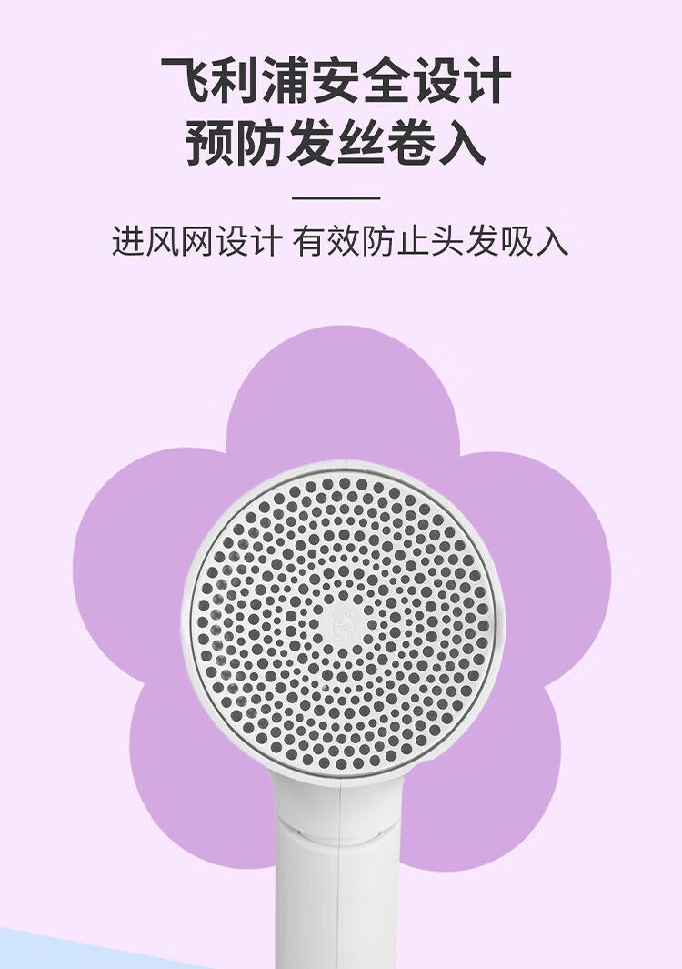 飞利浦 电吹风机BHD309粉色风嘴 家用大功率1600W 恒温护发速干 便携折叠