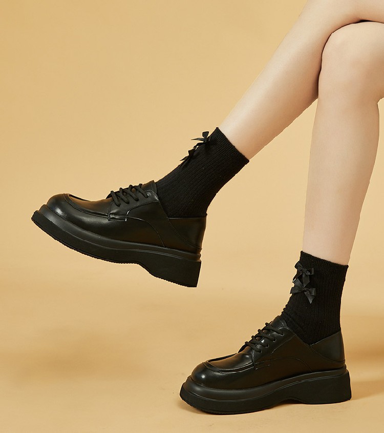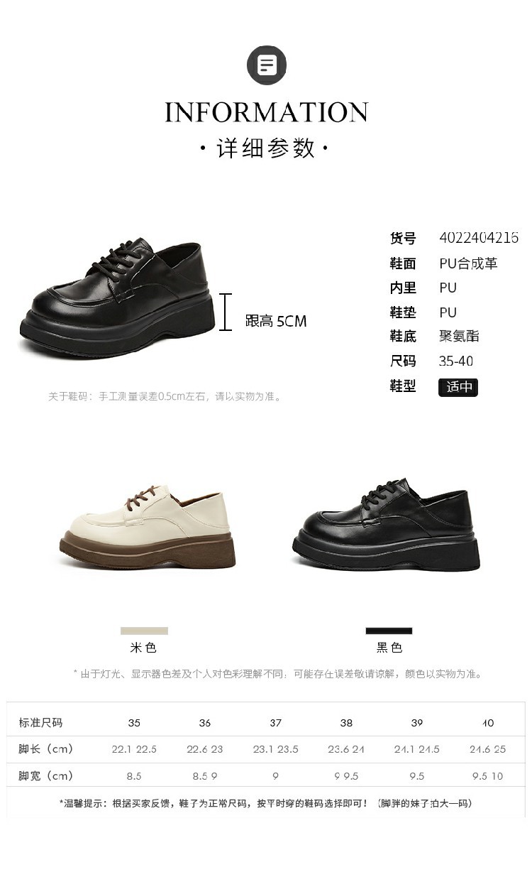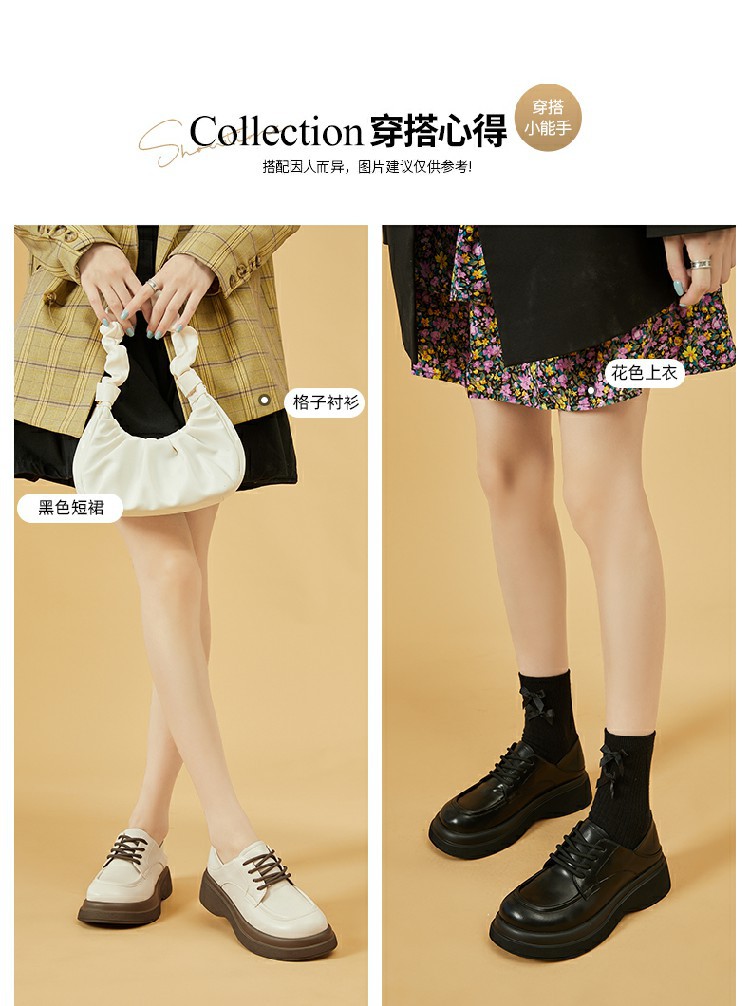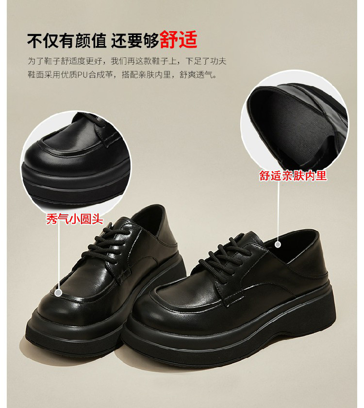 商品名称:【厚底增高】英伦风学院牛津鞋女圆头系带粗跟复古小皮鞋女单鞋 190618