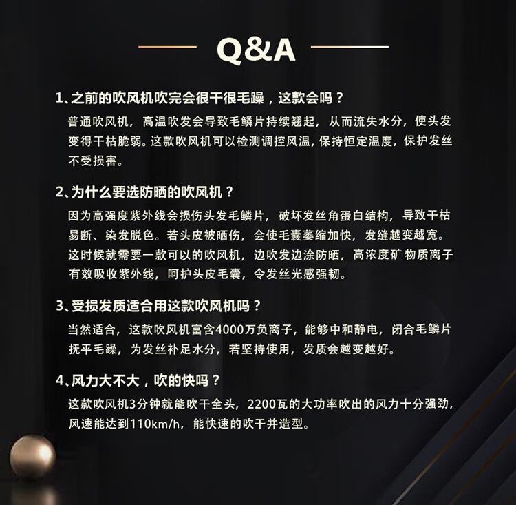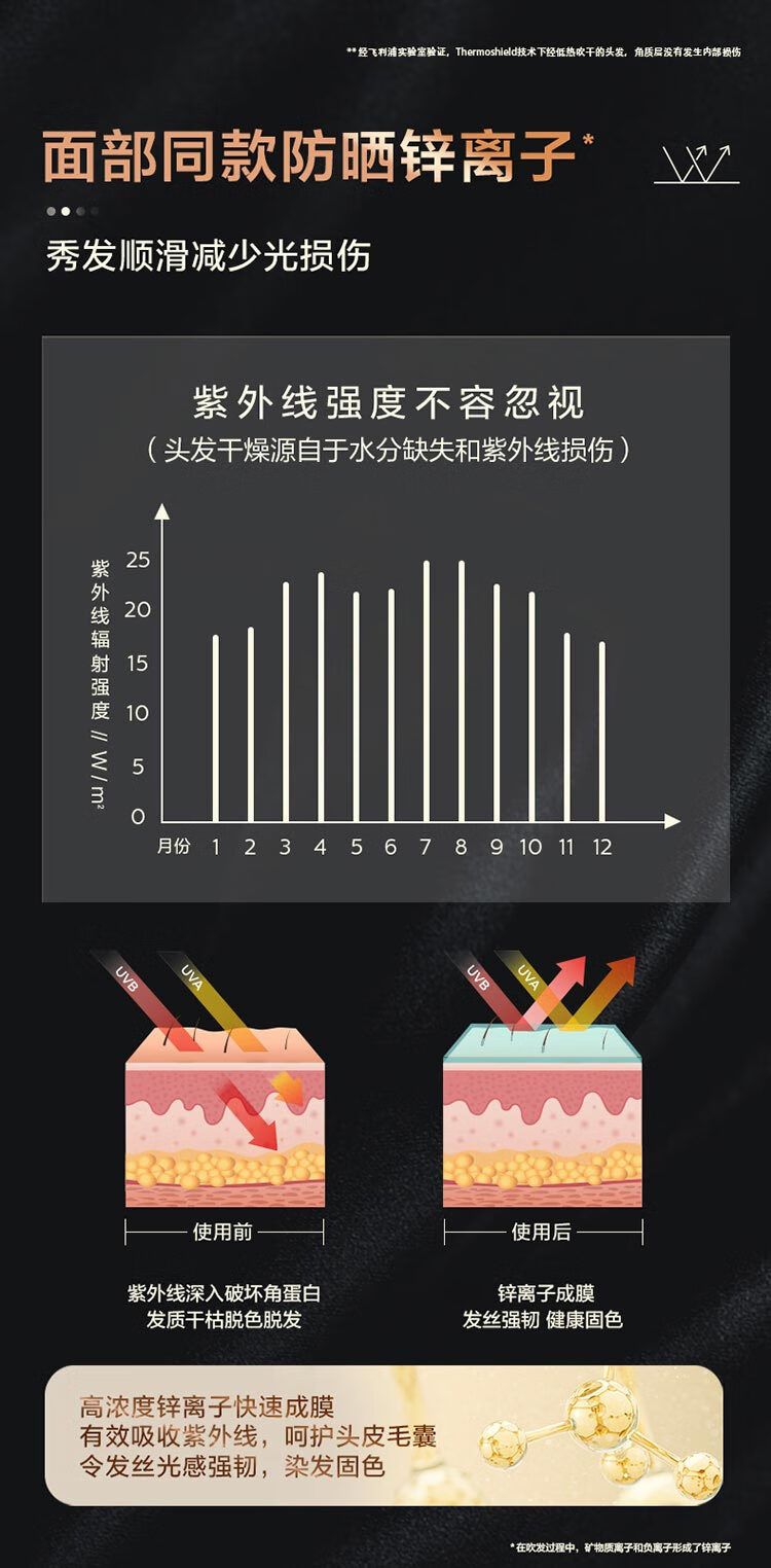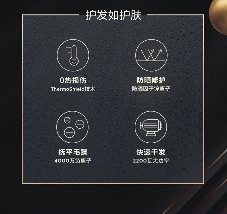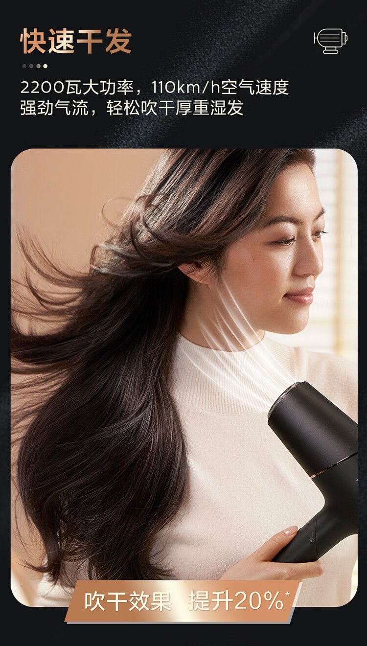 商品名称:飞利浦电吹风机 BHD538/25黑色 温感焕护4000万负离子 矿物质锌离子大功率速干 蓬松高颅顶