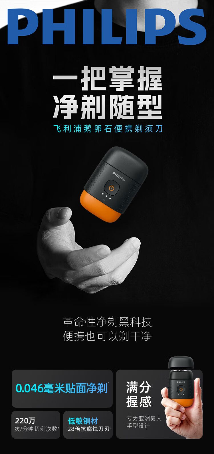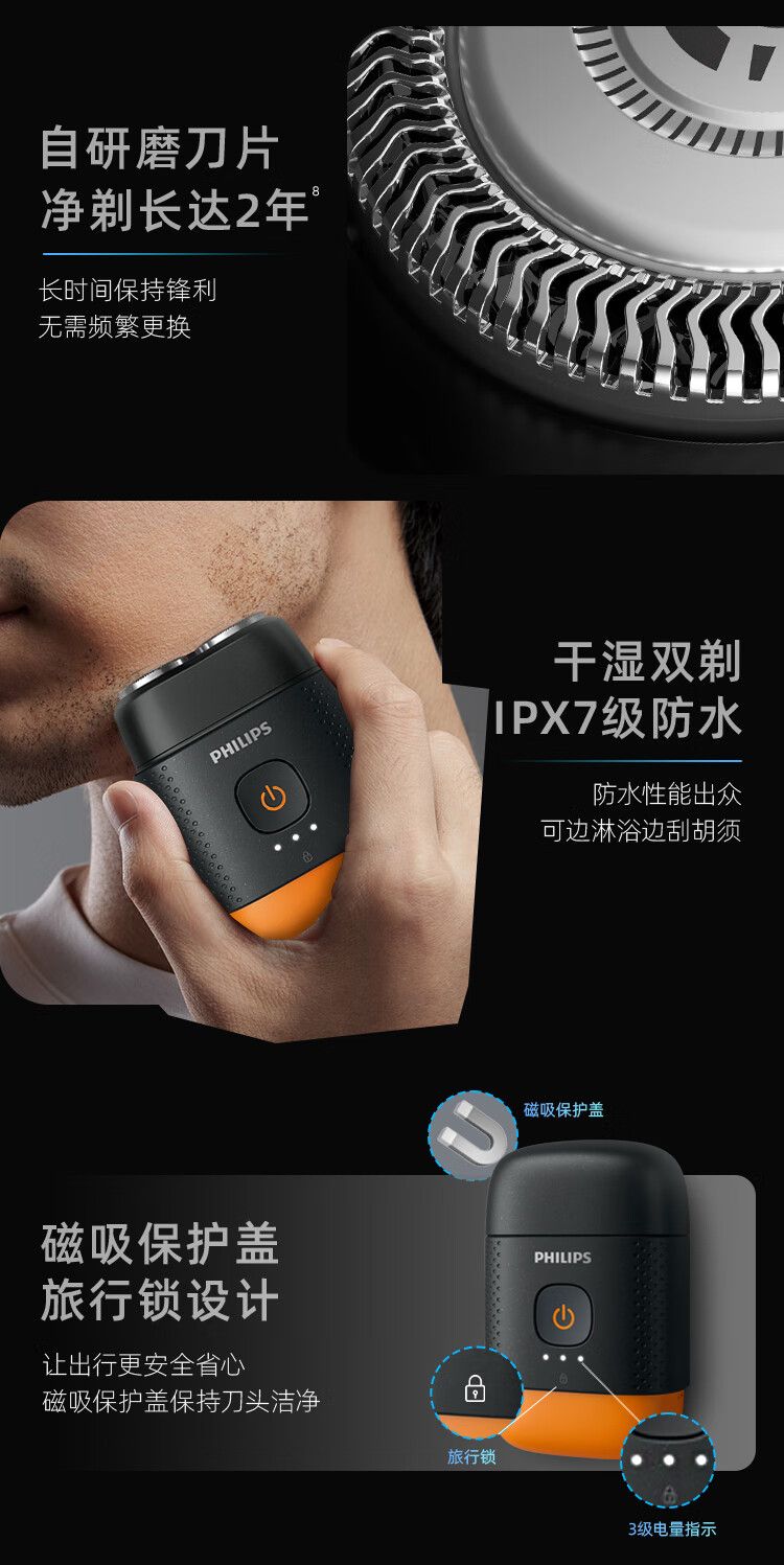 商品名称:飞利浦 剃须刀YQ660 电动鹅卵石便携式刮胡刀胡须刀全身水洗送男友送长辈生日礼物