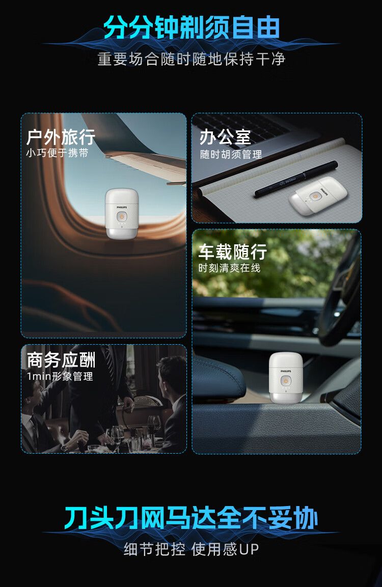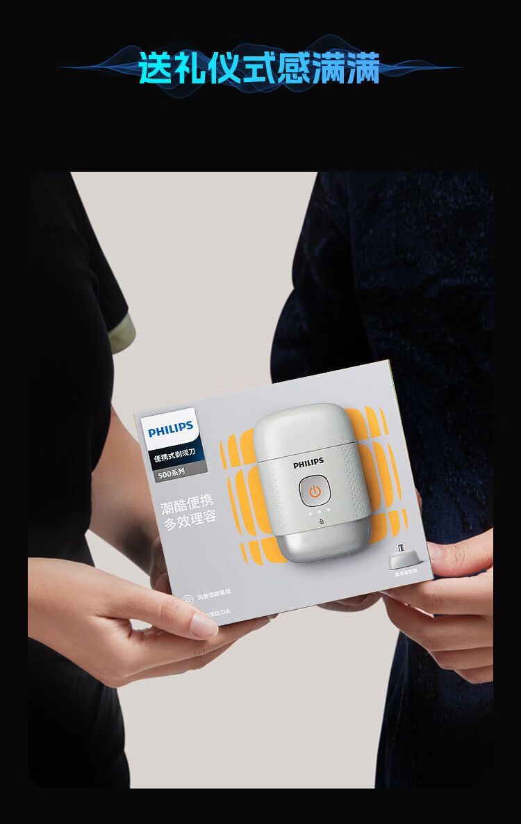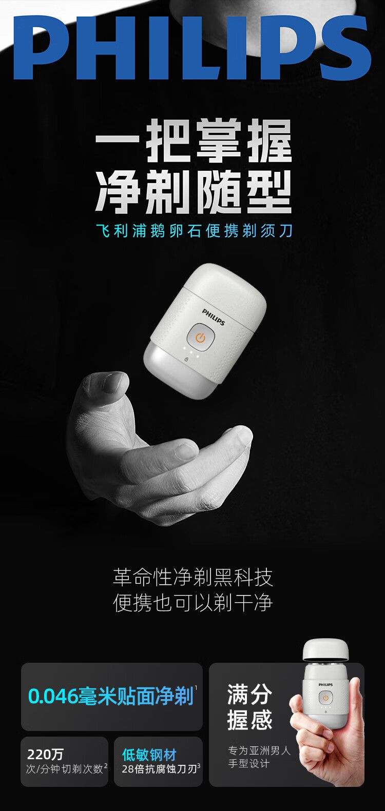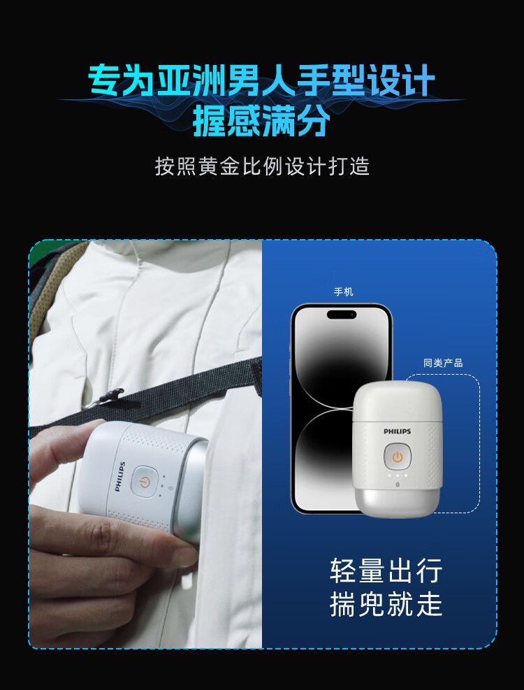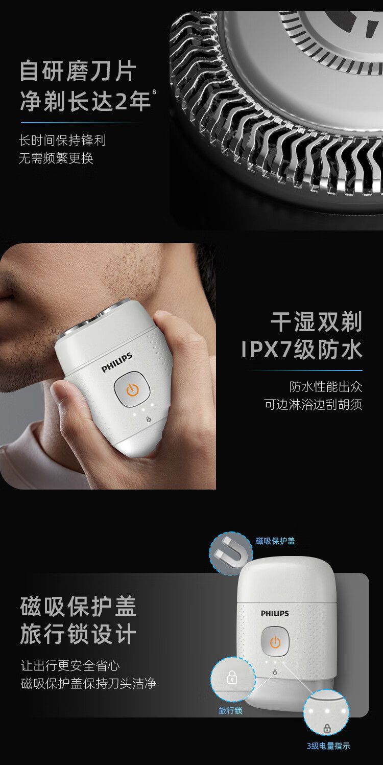 飞利浦 剃须刀PQ663 鹅卵石便携剃须刀男士电动剃刮胡刀全身水洗