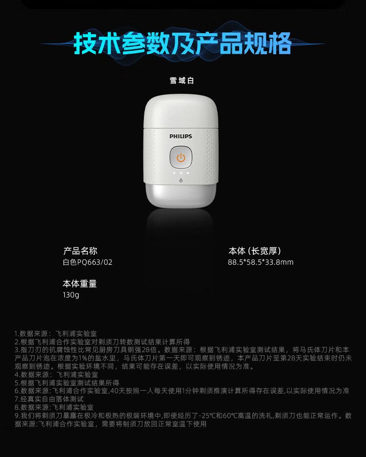 商品名称:飞利浦 剃须刀PQ663 鹅卵石便携剃须刀男士电动剃刮胡刀全身水洗