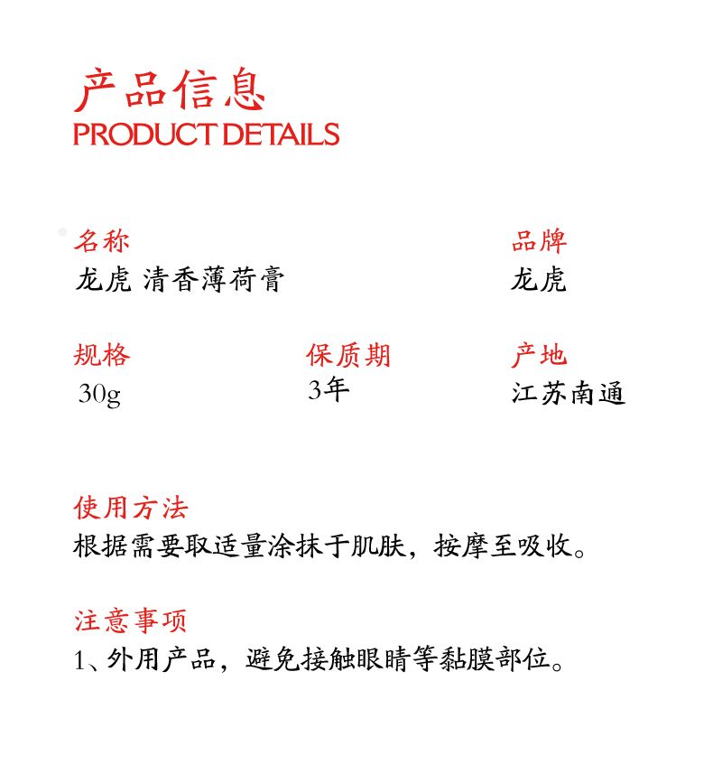 商品名称:龙虎清香薄荷膏
