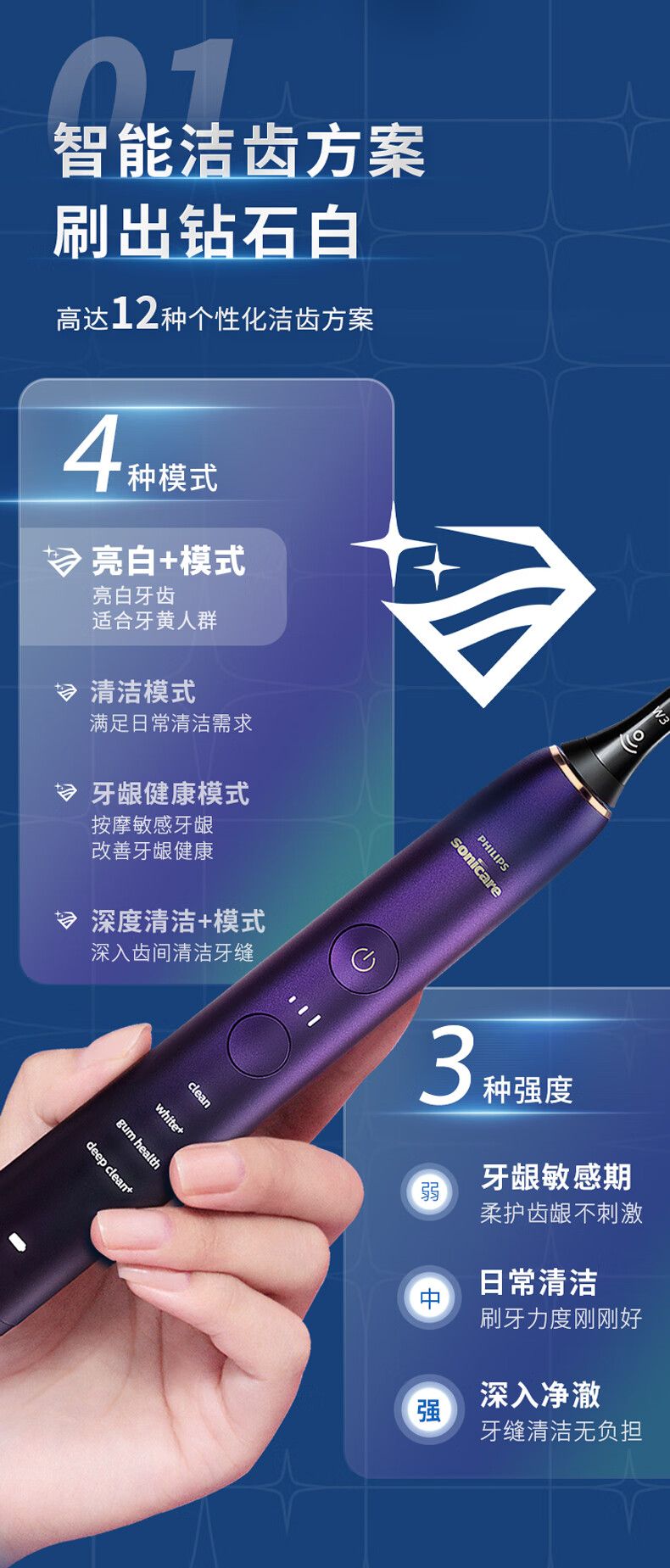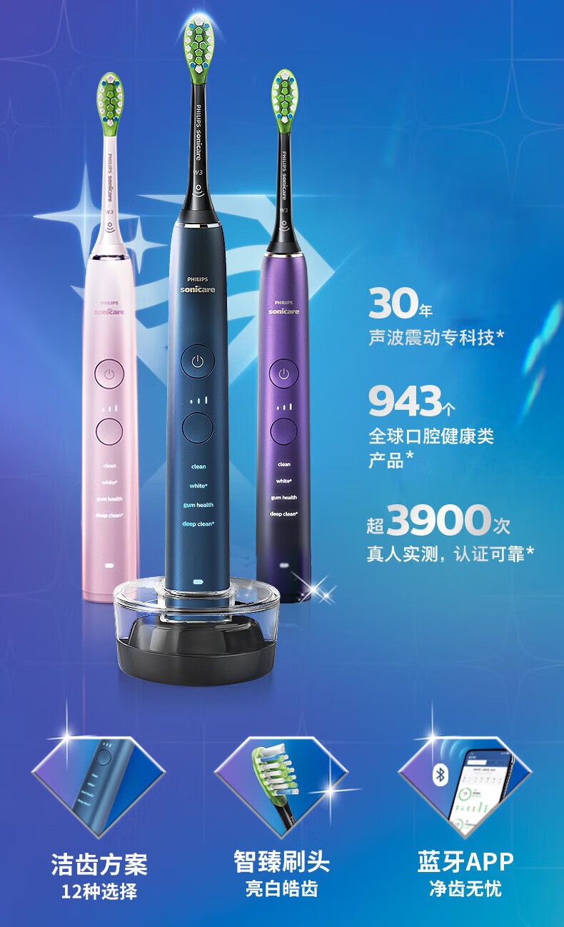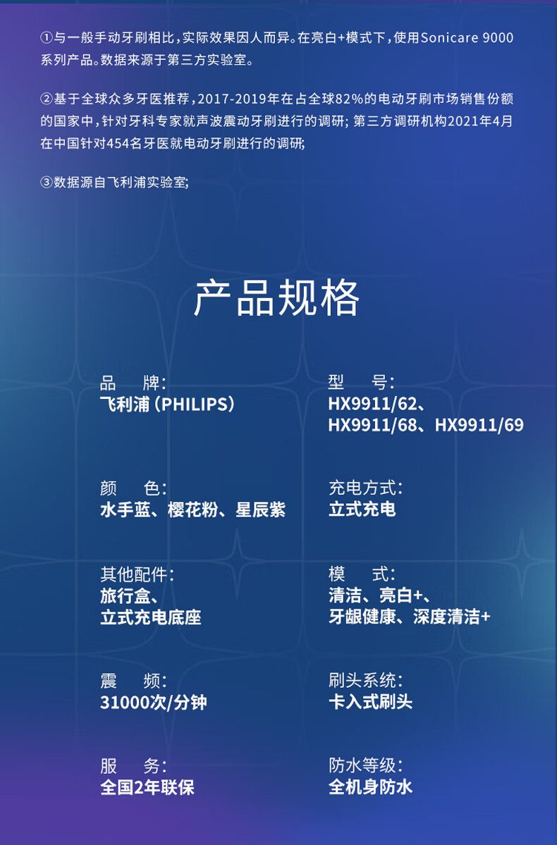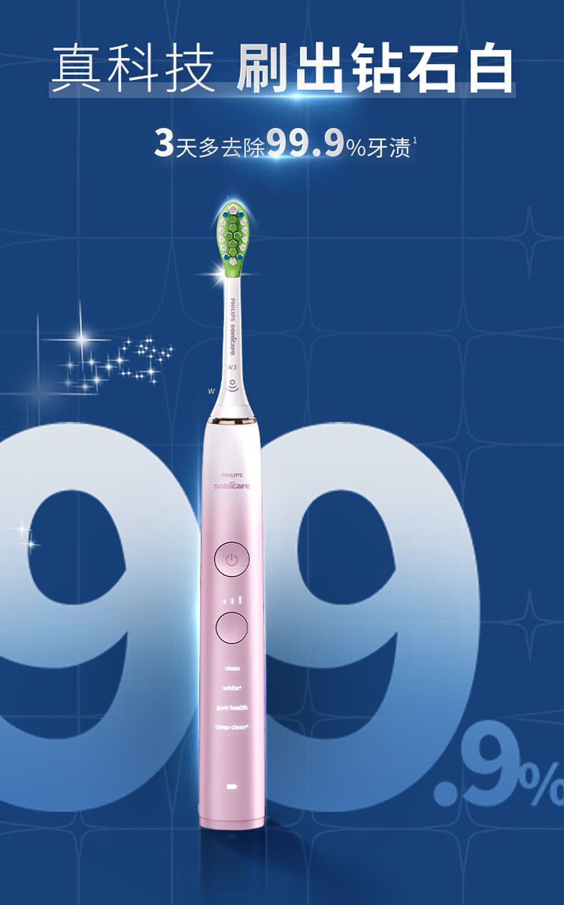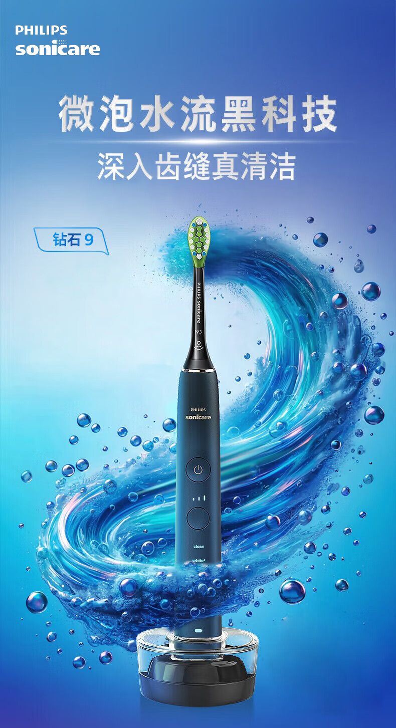 商品名称:飞利浦电动牙刷HX9911 钻石9系 微泡水流科技 智能可视化洁齿去除牙渍