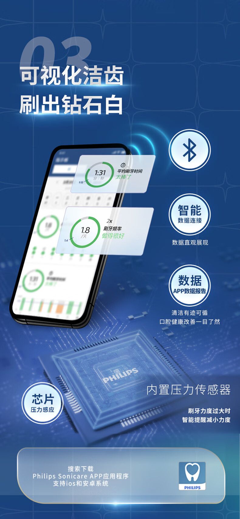 飞利浦电动牙刷HX9911 钻石9系 微泡水流科技 智能可视化洁齿去除牙渍