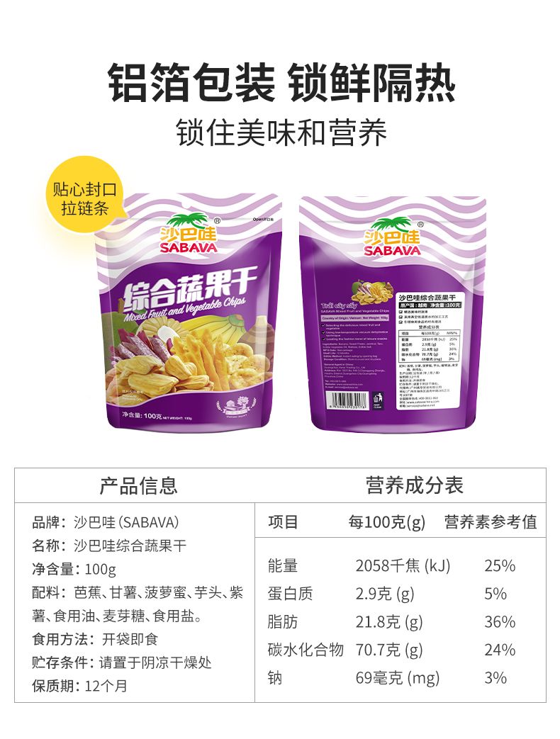 商品名称:沙巴哇 进口综合蔬果干 100g/袋