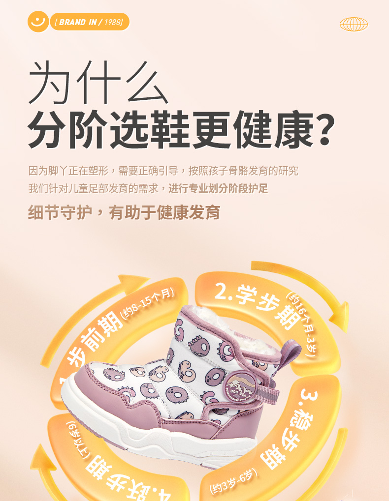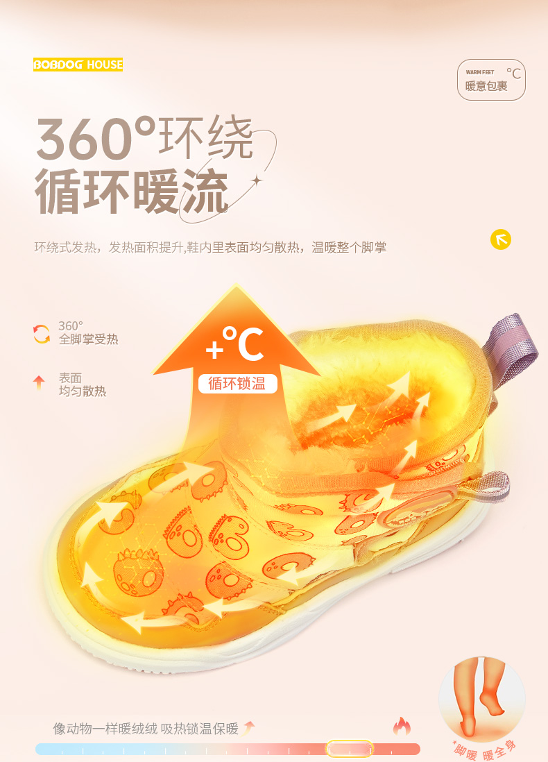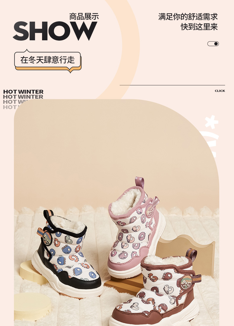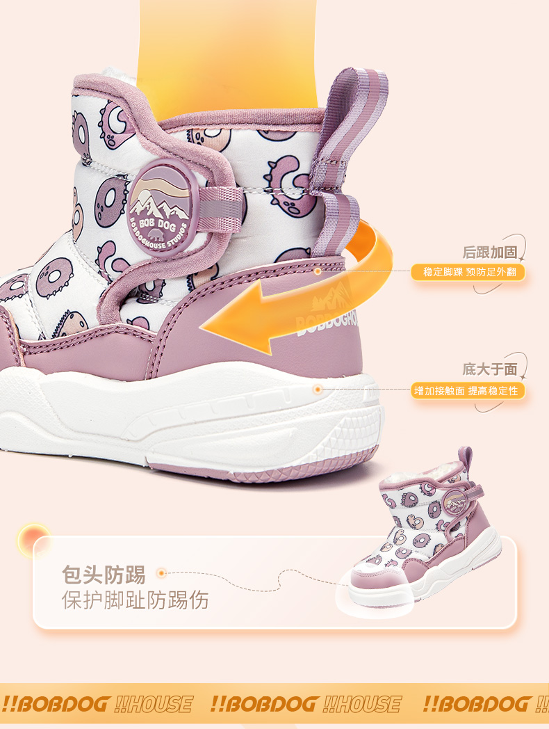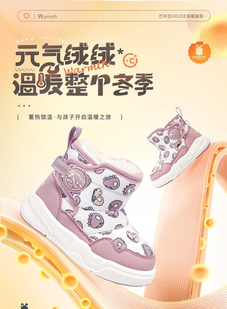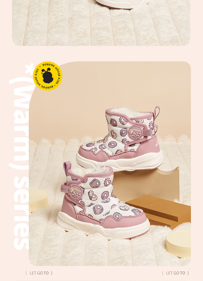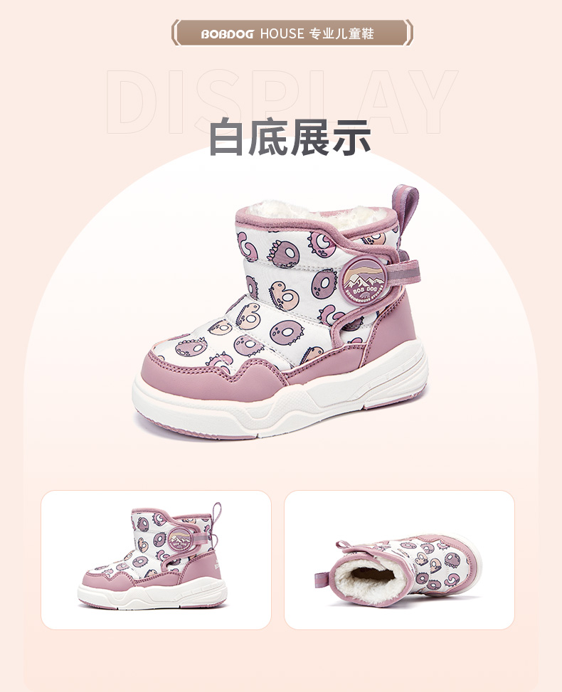 商品名称:巴布豆house童鞋冬季新款二棉鞋男女童加绒保暖舒适轻便高帮雪地靴