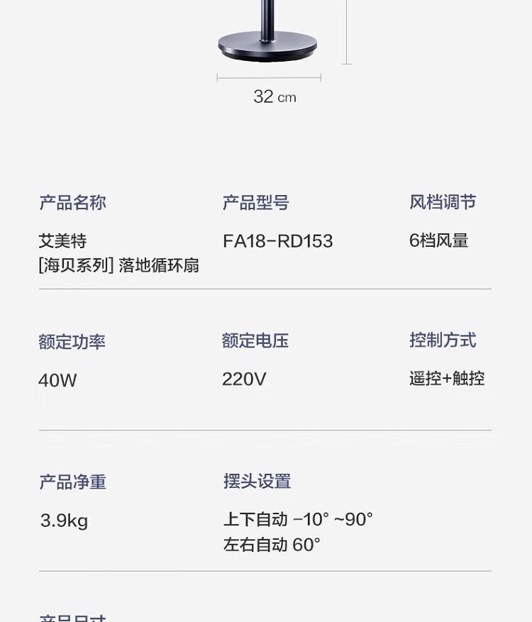 商品名称:艾美特 空气循环扇FA18-RD153 电风扇 轻音加高遥控落地扇 家用节能台立两用换气扇