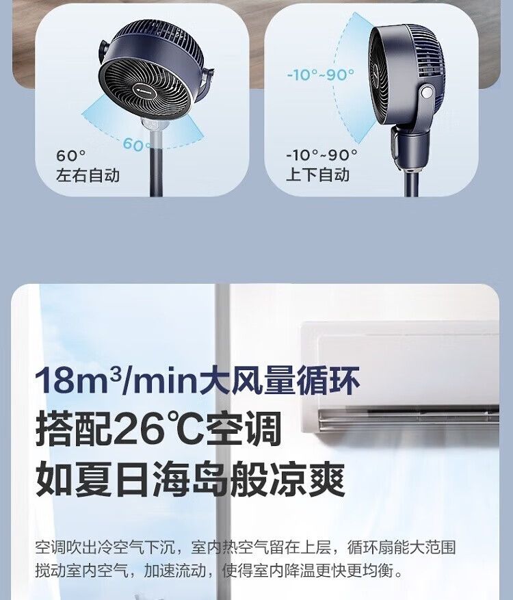 艾美特 空气循环扇FA18-RD153 电风扇 轻音加高遥控落地扇 家用节能台立两用换气扇