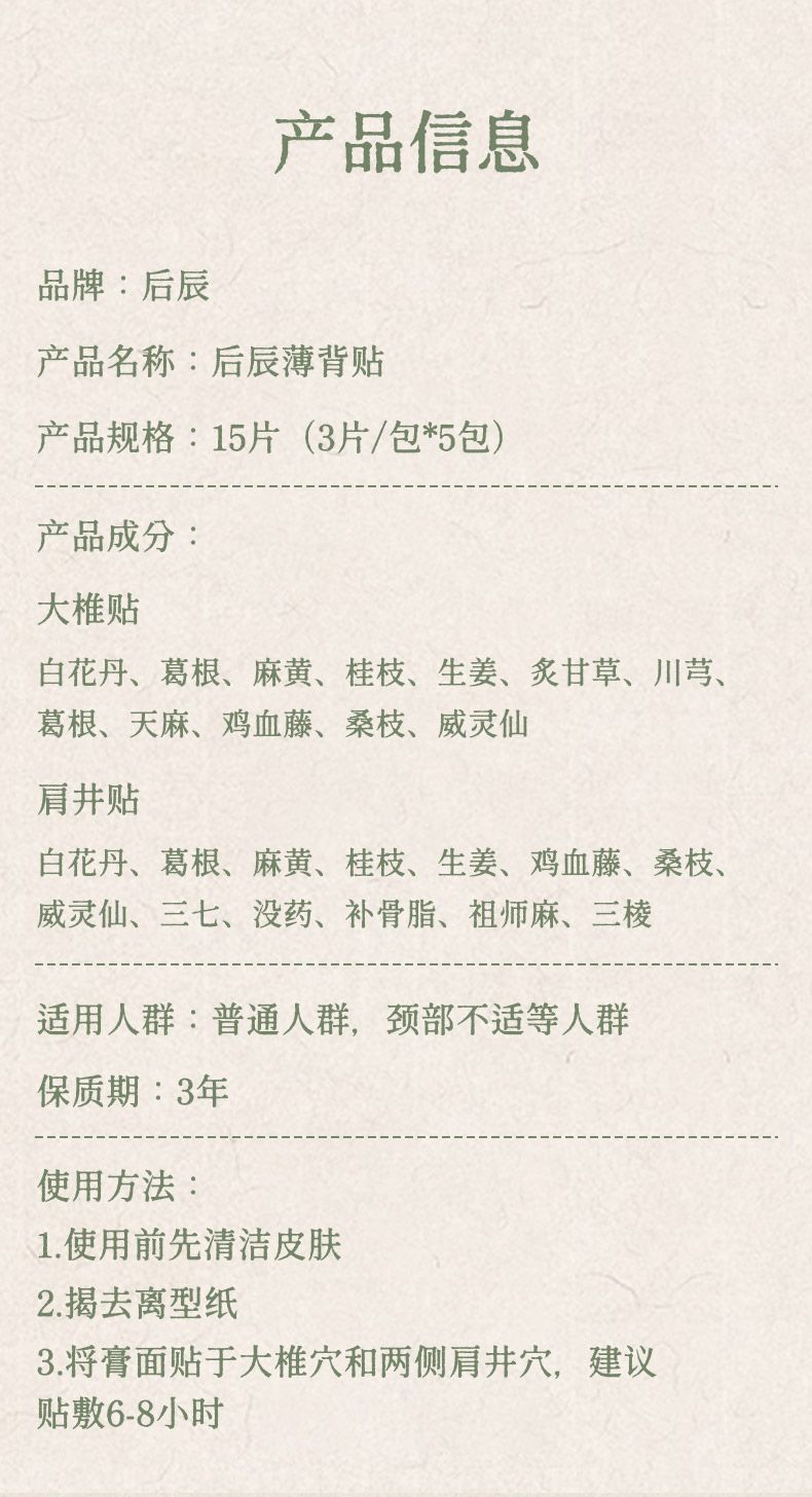 商品名称:后辰薄背贴15片(3贴*5)/袋