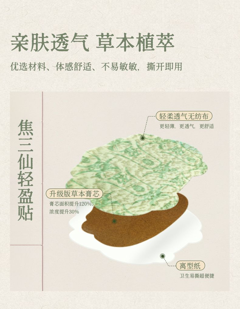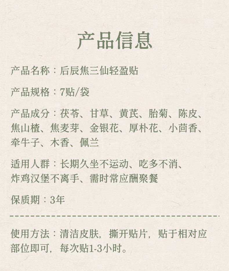 商品名称:后辰焦三仙轻盈贴 7贴/袋 排油贴重磅升级