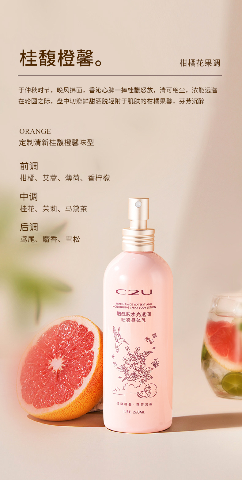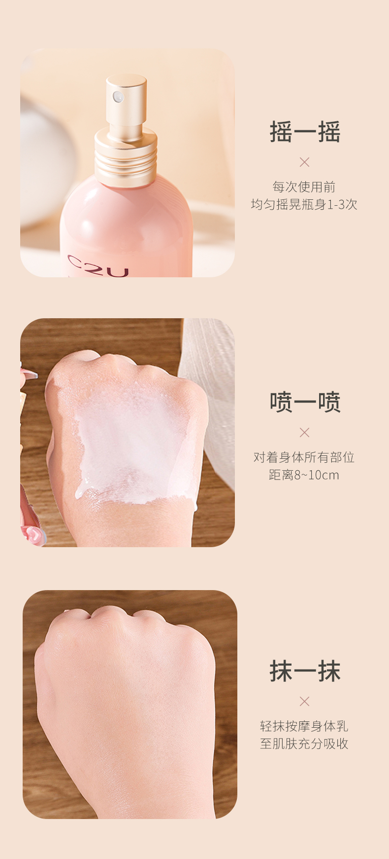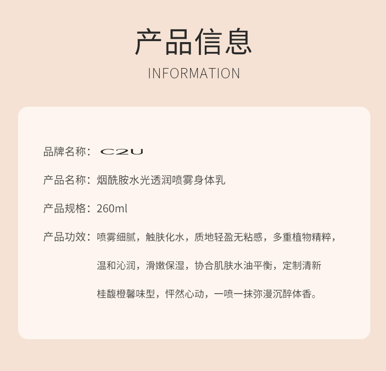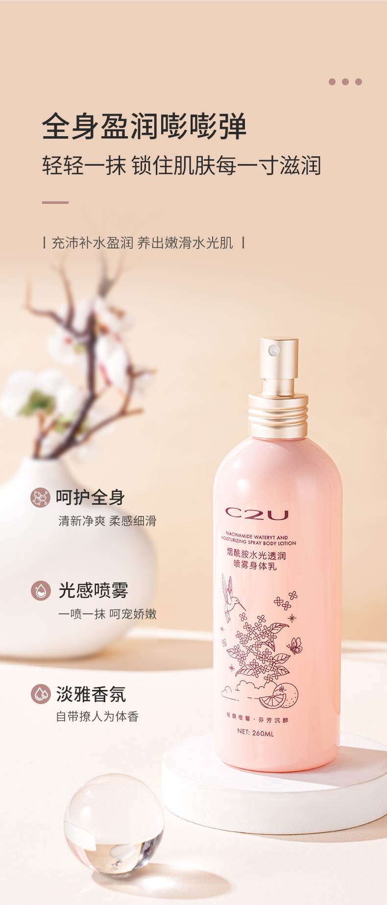 商品名称:【包邮-身体乳】C2U烟酰胺水光透润喷雾身体乳保湿补水清爽润肤乳护肤品乳液成人260ml