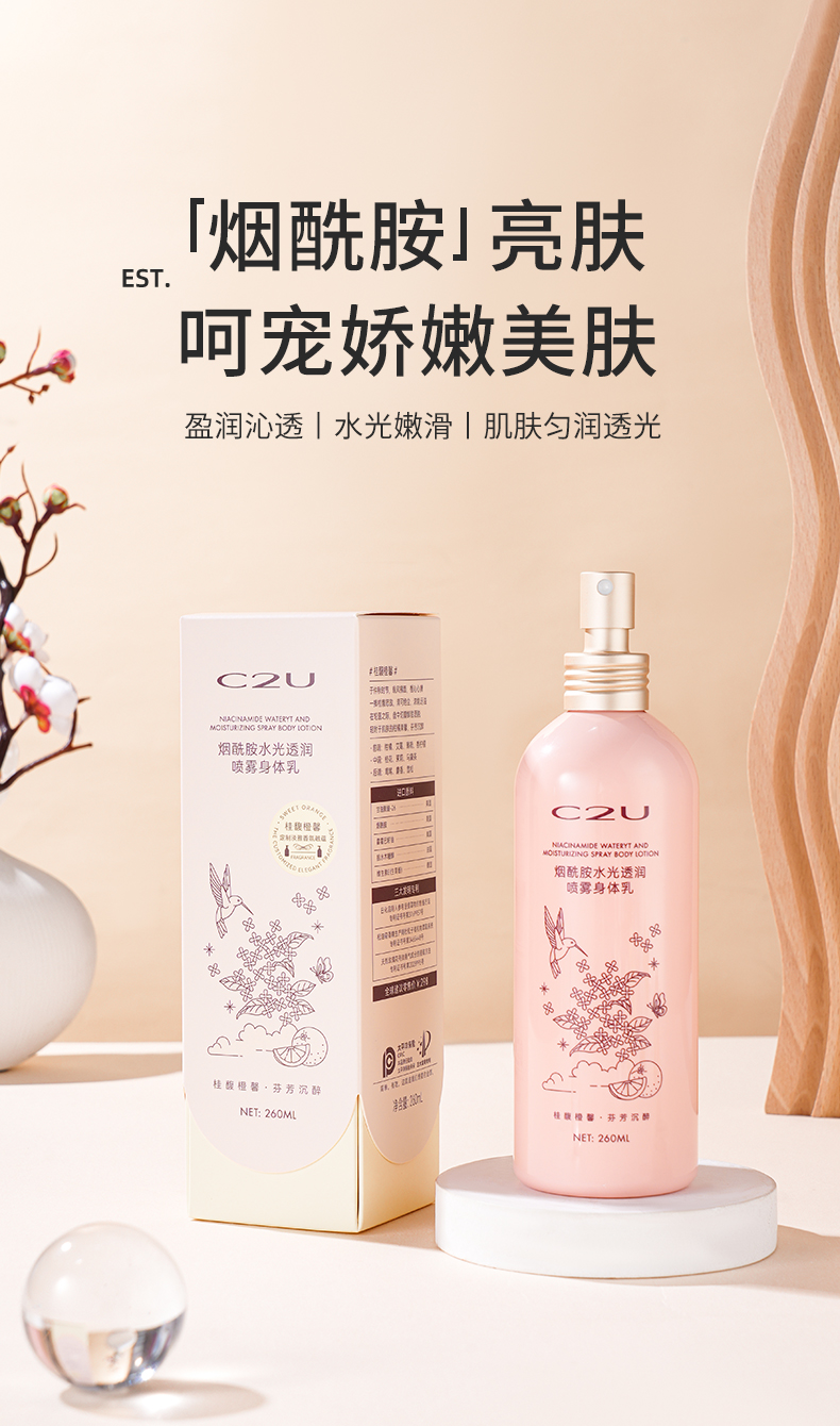 【包邮-身体乳】C2U烟酰胺水光透润喷雾身体乳保湿补水清爽润肤乳护肤品乳液成人260ml