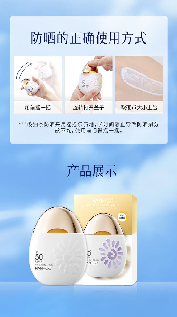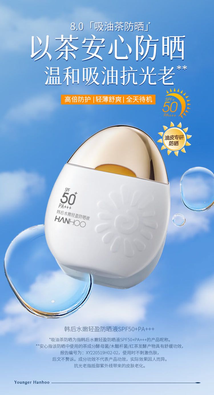 商品名称:Hanhoo/韩后 水嫩轻盈防晒液 SPF50+PA+++ 50g