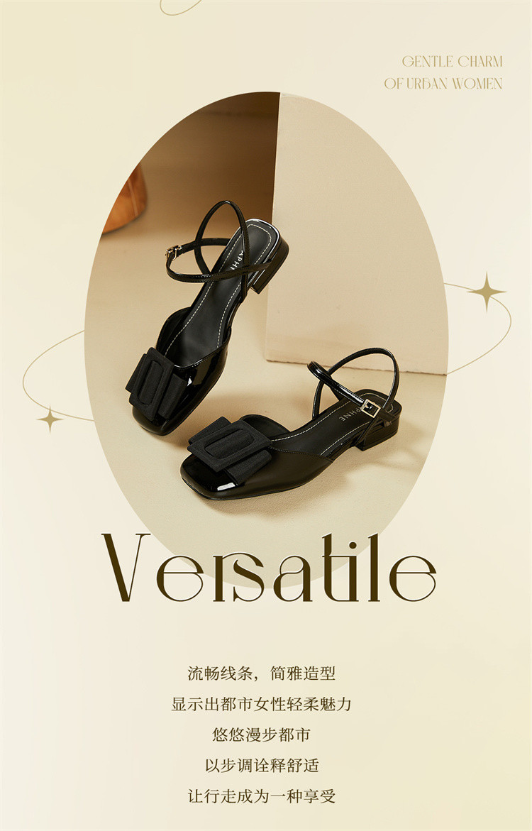 商品名称:夏季舒适一字带凉鞋时装鞋蝴蝶结潮流女单鞋舒适平底鞋时尚通勤鞋 463895