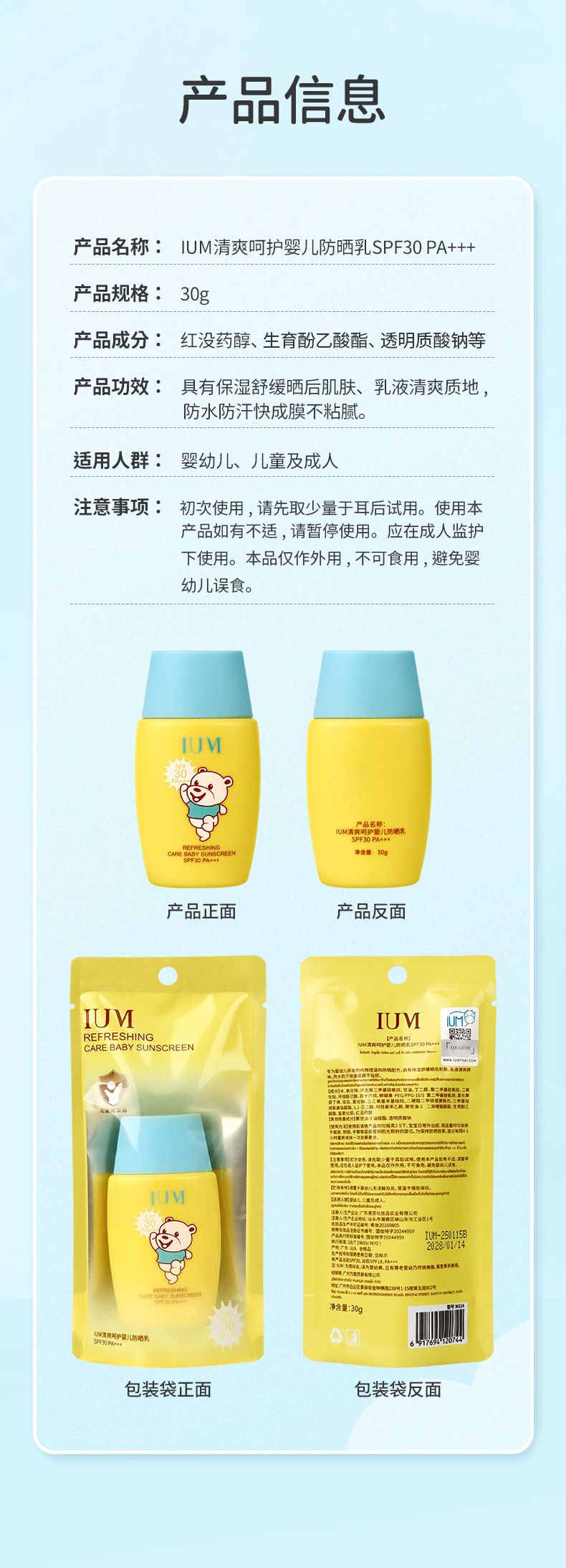 商品名称:IUM 清爽呵护婴儿防晒乳SPF30 PA+++ 30g