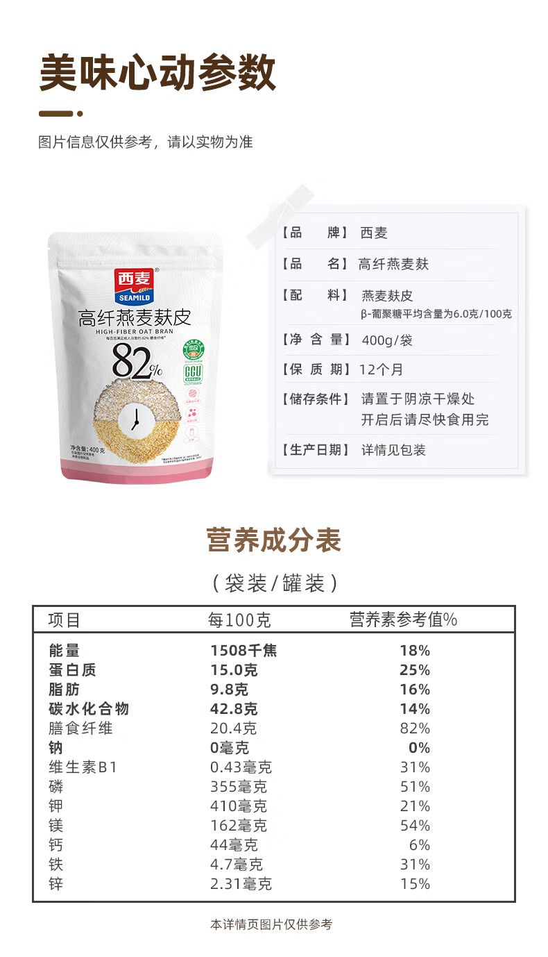 商品名称:高钙牛奶燕麦片392g/袋+高纤燕麦麸400g/袋 (送1个手提袋)