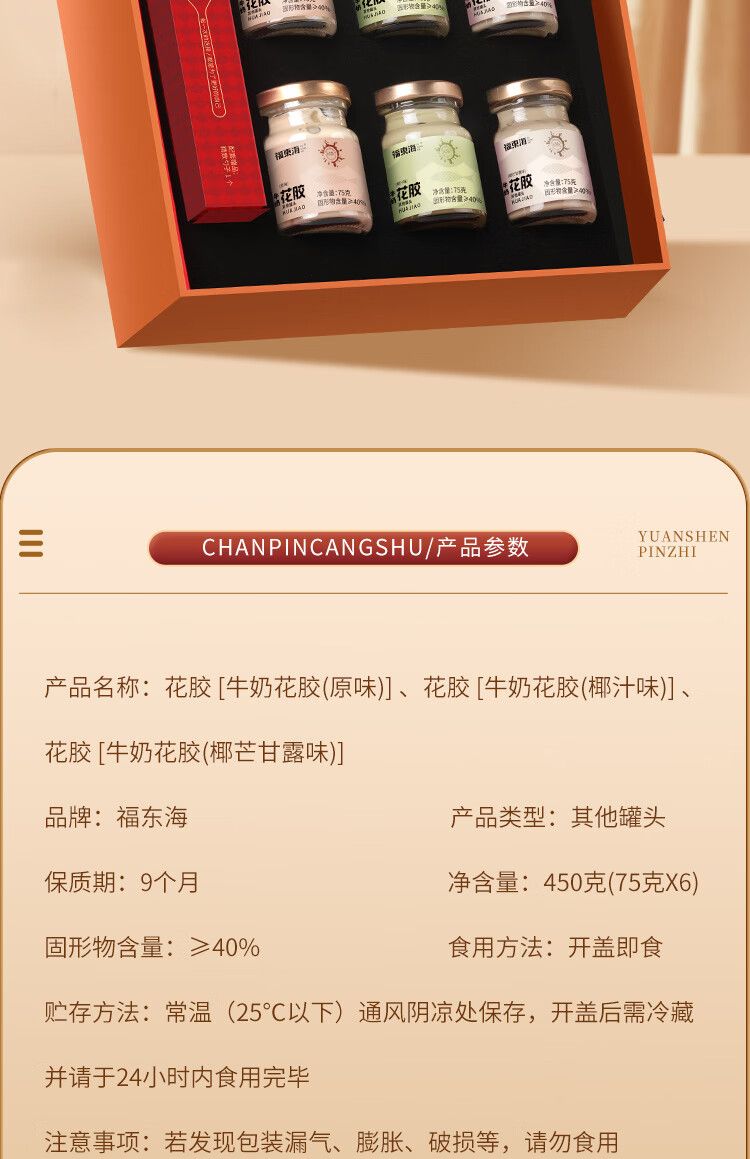 商品名称:福东海 即食花胶组合450克(75克x6瓶)/盒