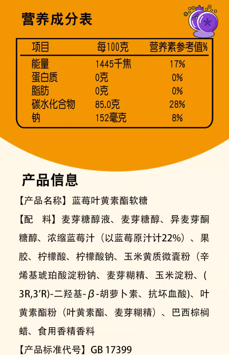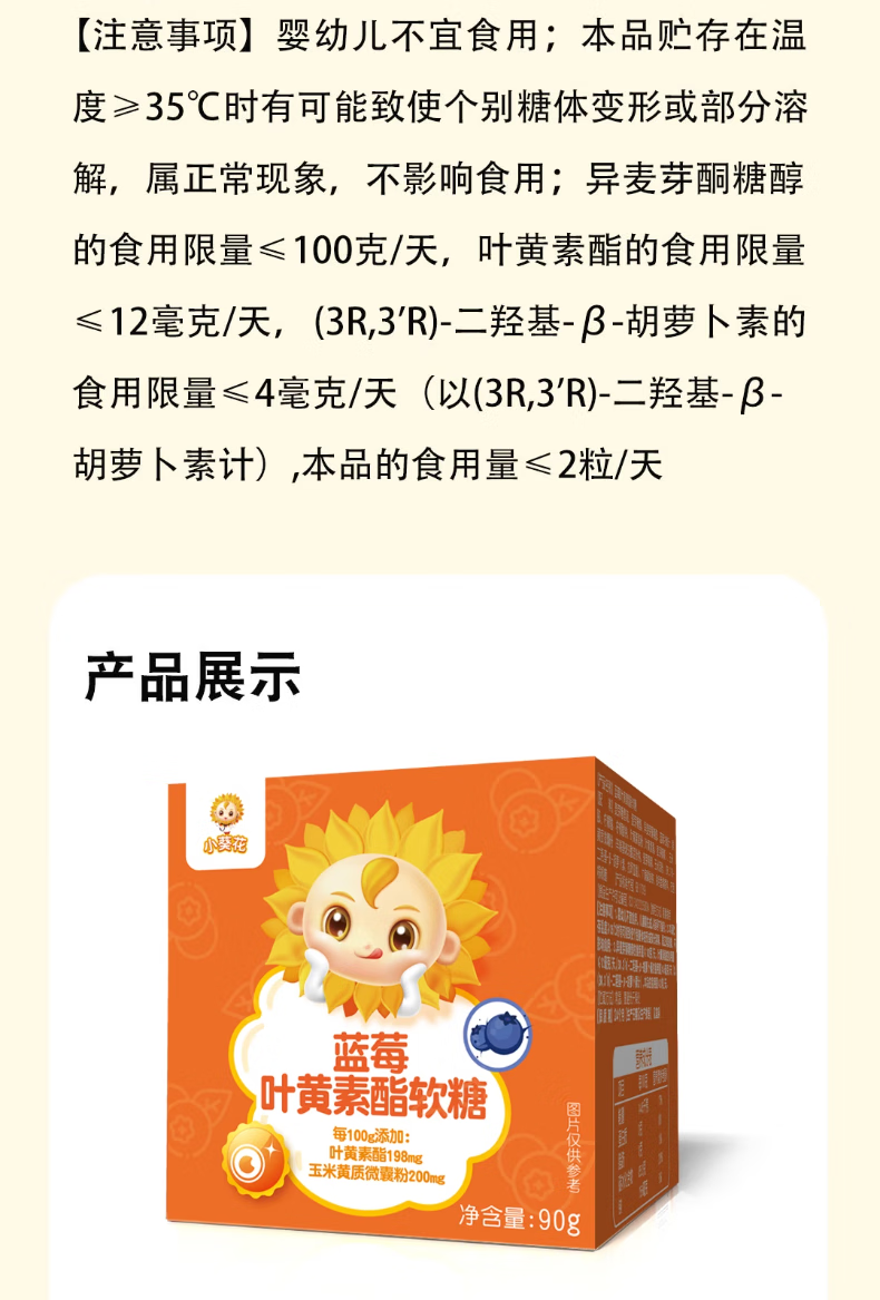 商品名称:葵花药业小葵花叶黄素酯软糖蓝莓学习必备儿童零食青少年儿童叶黄素 90g