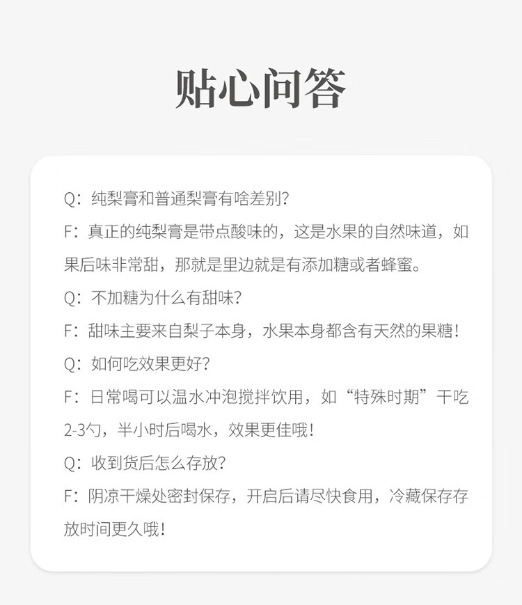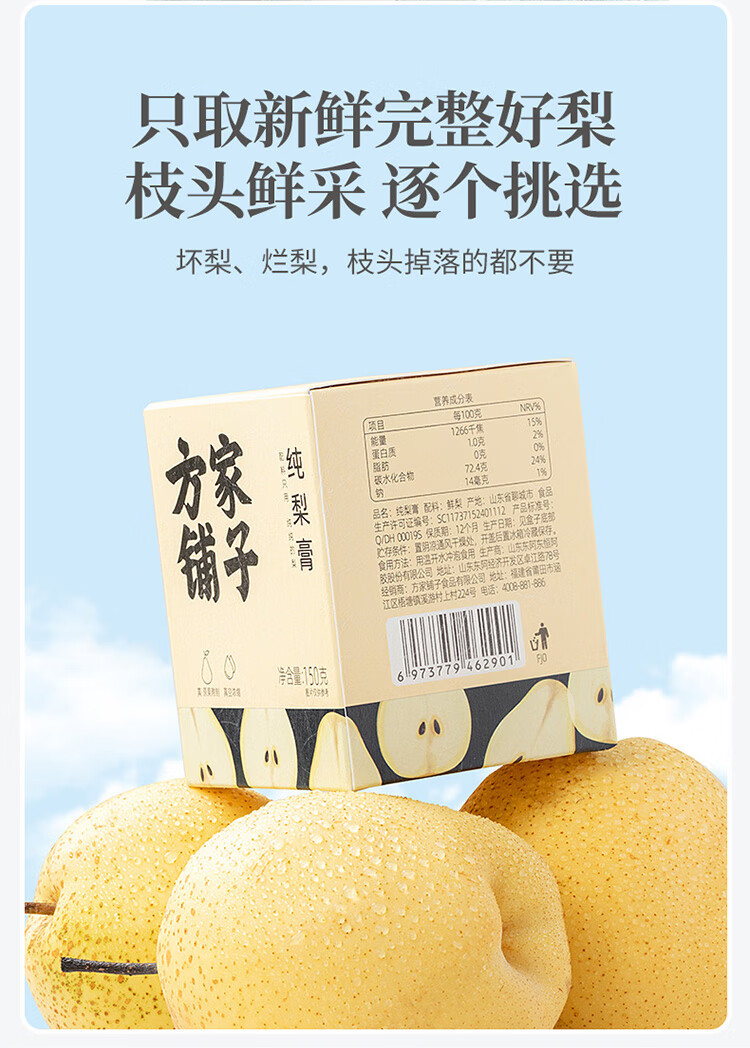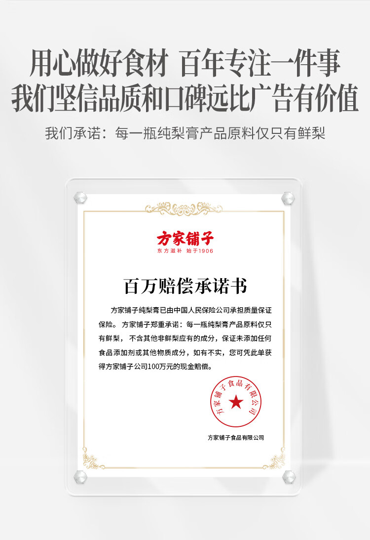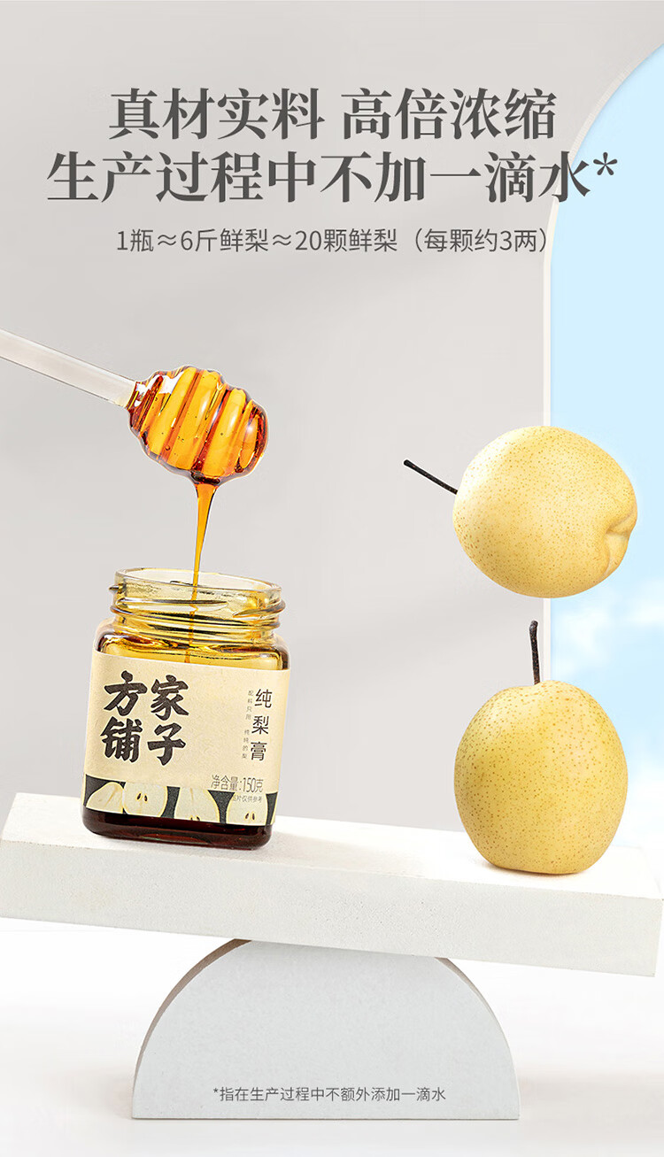 商品名称:方家铺子秋梨膏150g 纯梨膏0添加100%鲜梨熬制 清润儿童成人滋补品泡水 纯梨熬制无添加