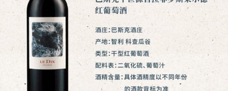 商品名称:拉菲(LAFITE)巴斯克十世 红葡萄酒750ml