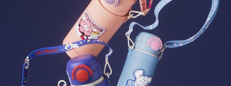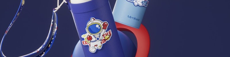 眯眯熊(Mimibear)双饮弹跳保温杯 蓝色太空探索 500ml 【送杯套、背带绳】