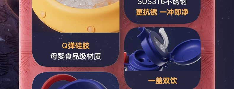 商品名称:眯眯熊(Mimibear)316不锈钢双饮弹跳保温杯 粉色桃气朵朵 500ml 【送杯套、背带绳】