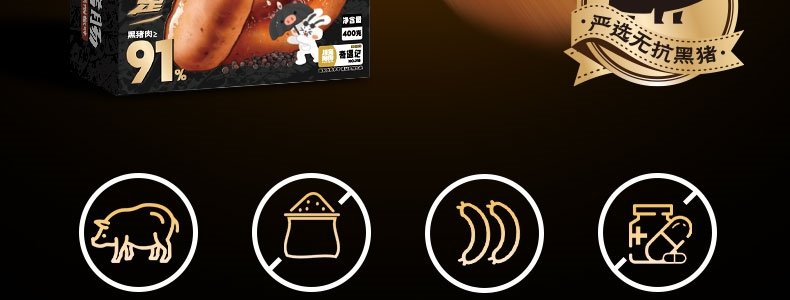 商品名称:月亮兜兜 黑猪肉烤肠 黑胡椒味 400g*3盒(24根)