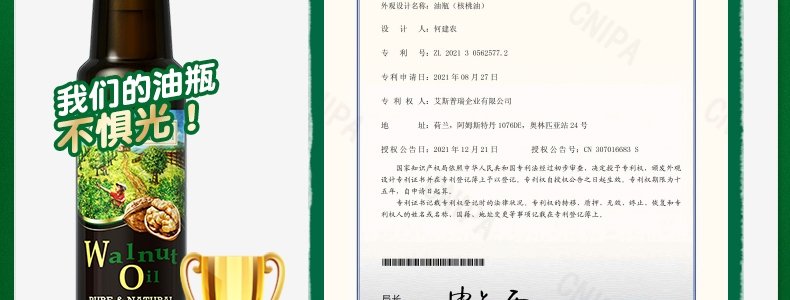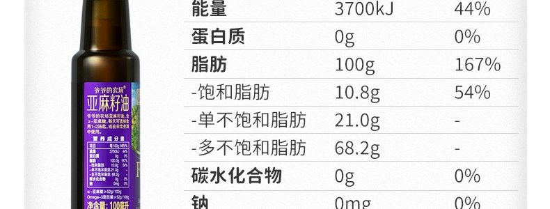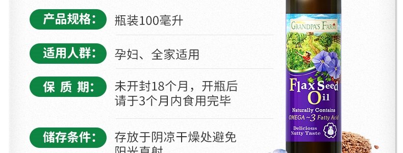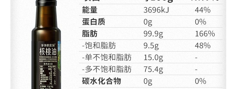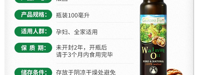 商品名称:爷爷的农场(Grandpa's Farm) 核桃油100ml+亚麻籽油100ml
