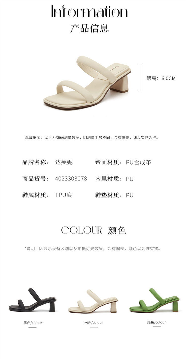 商品名称:【简约透气】时尚高跟凉鞋年夏季粗跟凉拖潮流百搭女拖鞋 528983