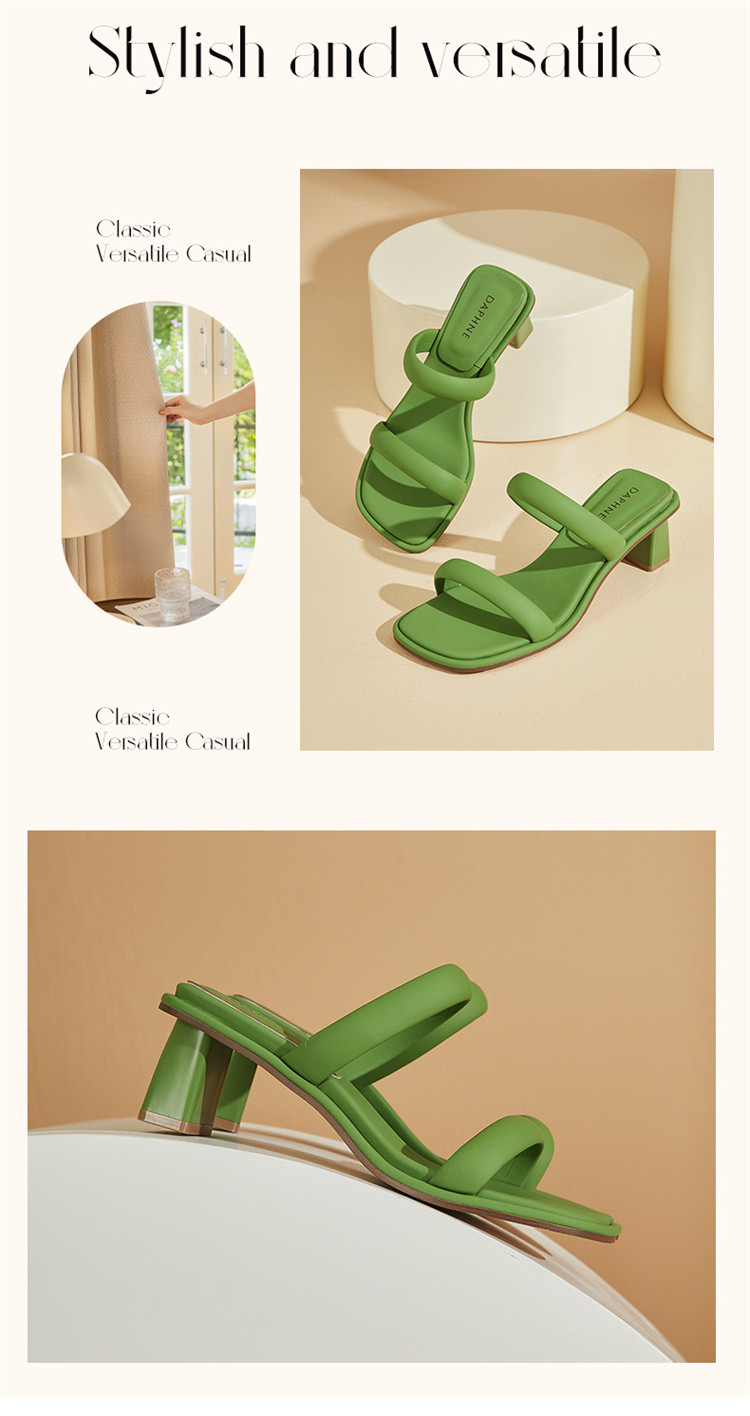 【简约透气】时尚高跟凉鞋年夏季粗跟凉拖潮流百搭女拖鞋 528983