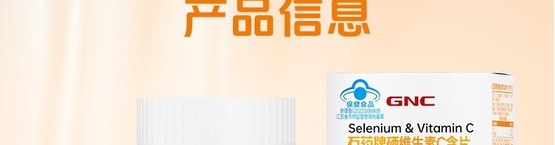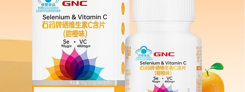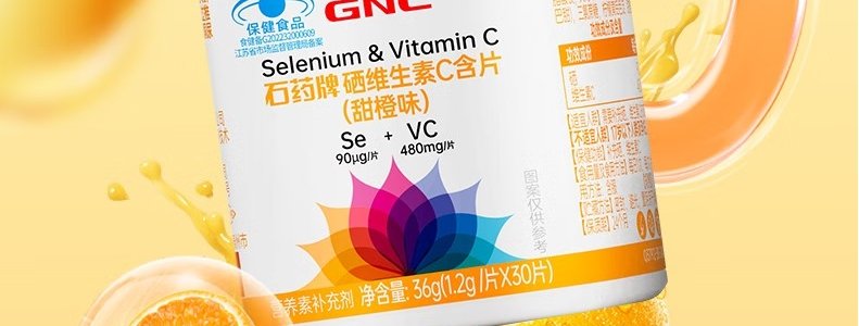 商品名称:美国 健安喜(GNC)硒维生素C含片 甜橙味 30片