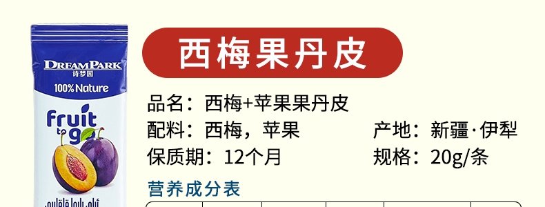 商品名称:诗梦园 西梅果丹皮 20g*20条