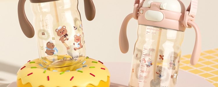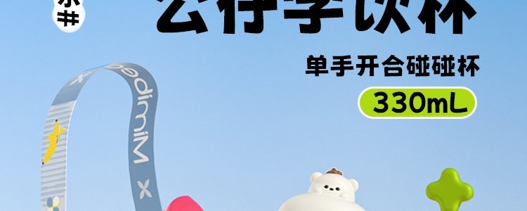 眯眯熊(Mimibear)PPSU材质 公仔学饮水杯 蓝色330ml 【送背带绳】