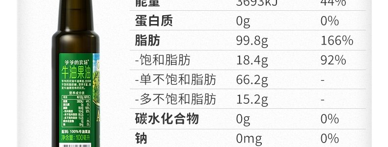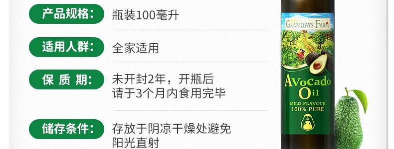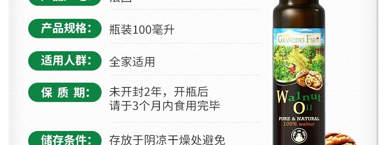商品名称:爷爷的农场 核桃油100ml+牛油果油100ml