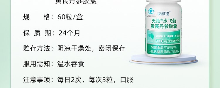 商品名称:诺威佳(NYO3) 天灿水飞蓟黄芪丹参胶囊 60粒
