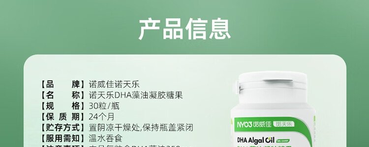 商品名称:诺威佳(NYO3) 诺天乐DHA藻油凝胶糖果 30粒
